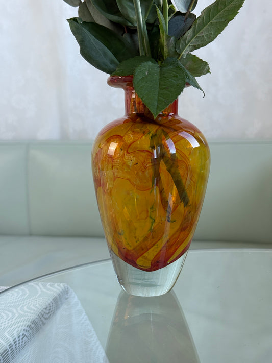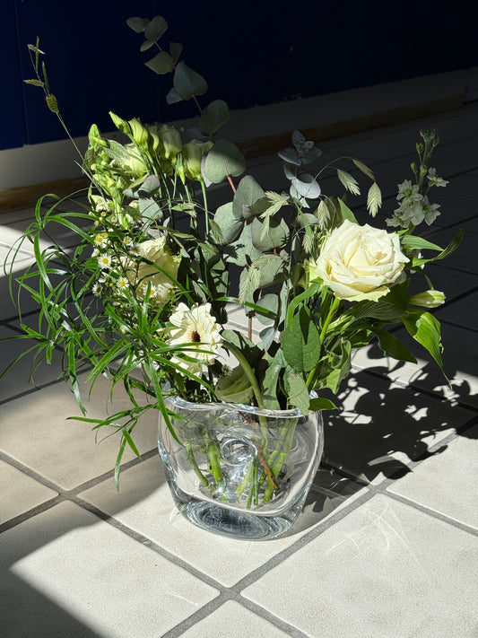 Smuk og iøjnefaldende tulipanvase i en dyb blå farve med elegant bølget kant. Formen er skabt til at holde blomster flot adskilt, så hver stilk får plads og skaber et fyldigt og levende udtryk – perfekt til tulipaner, men også smuk med andre blomster.