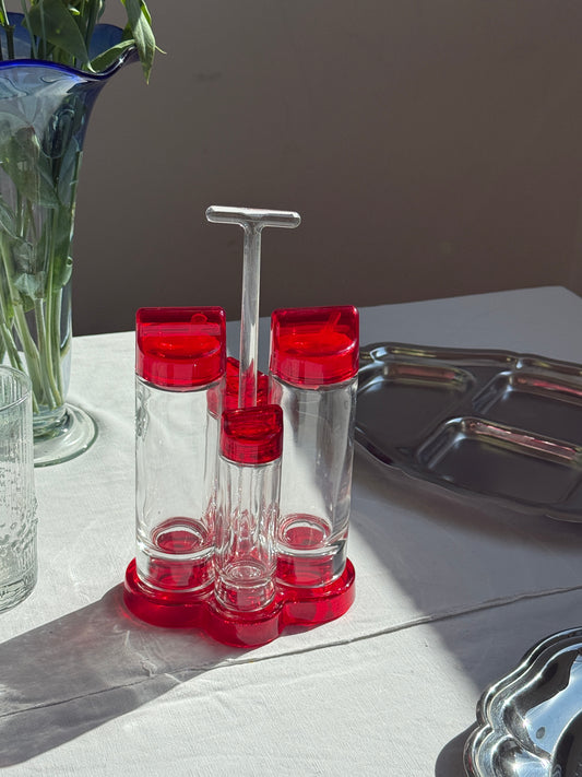 Italiensk krydderisæt i glas og rød akryl, Guzzini