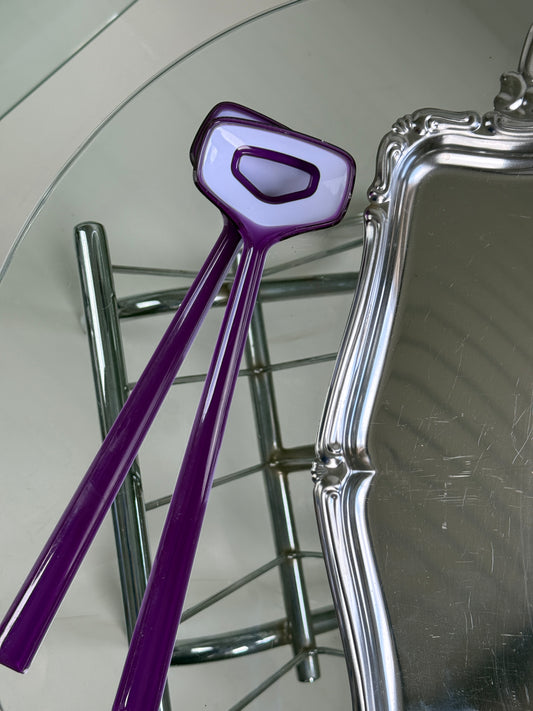 Retro salatbestik i lilla plast