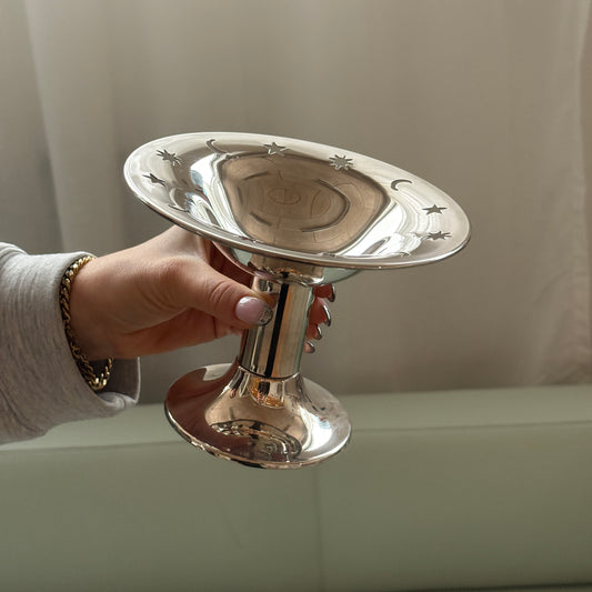 Opsats i sølvfarvet metal med stjerner & måner