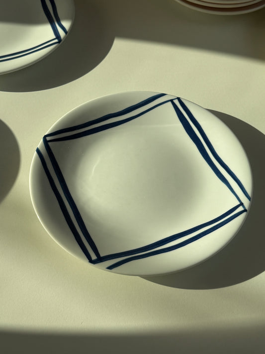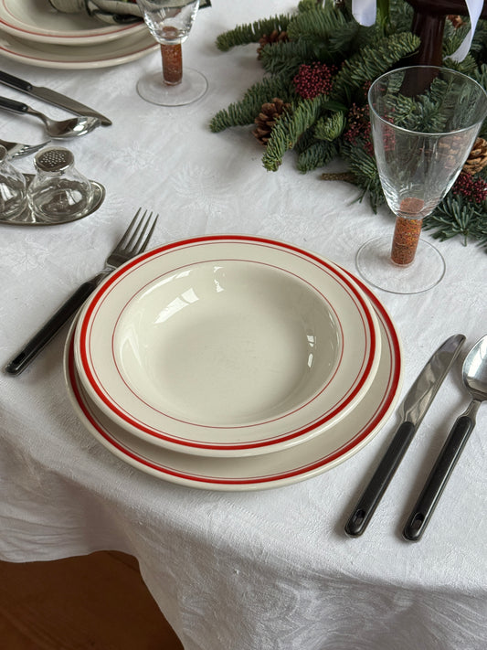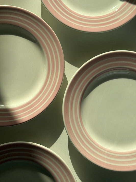 Bistro tallerkner med lyserød kant, sæt med 12 stk.
