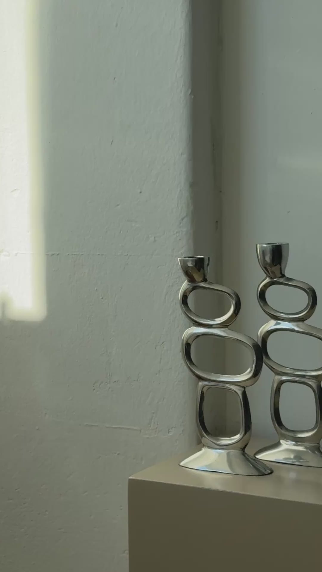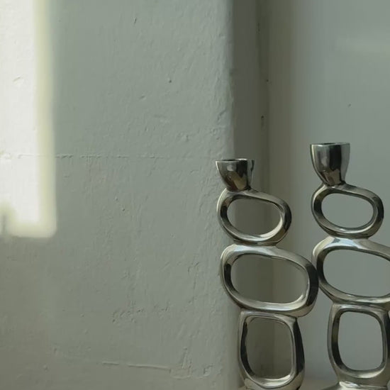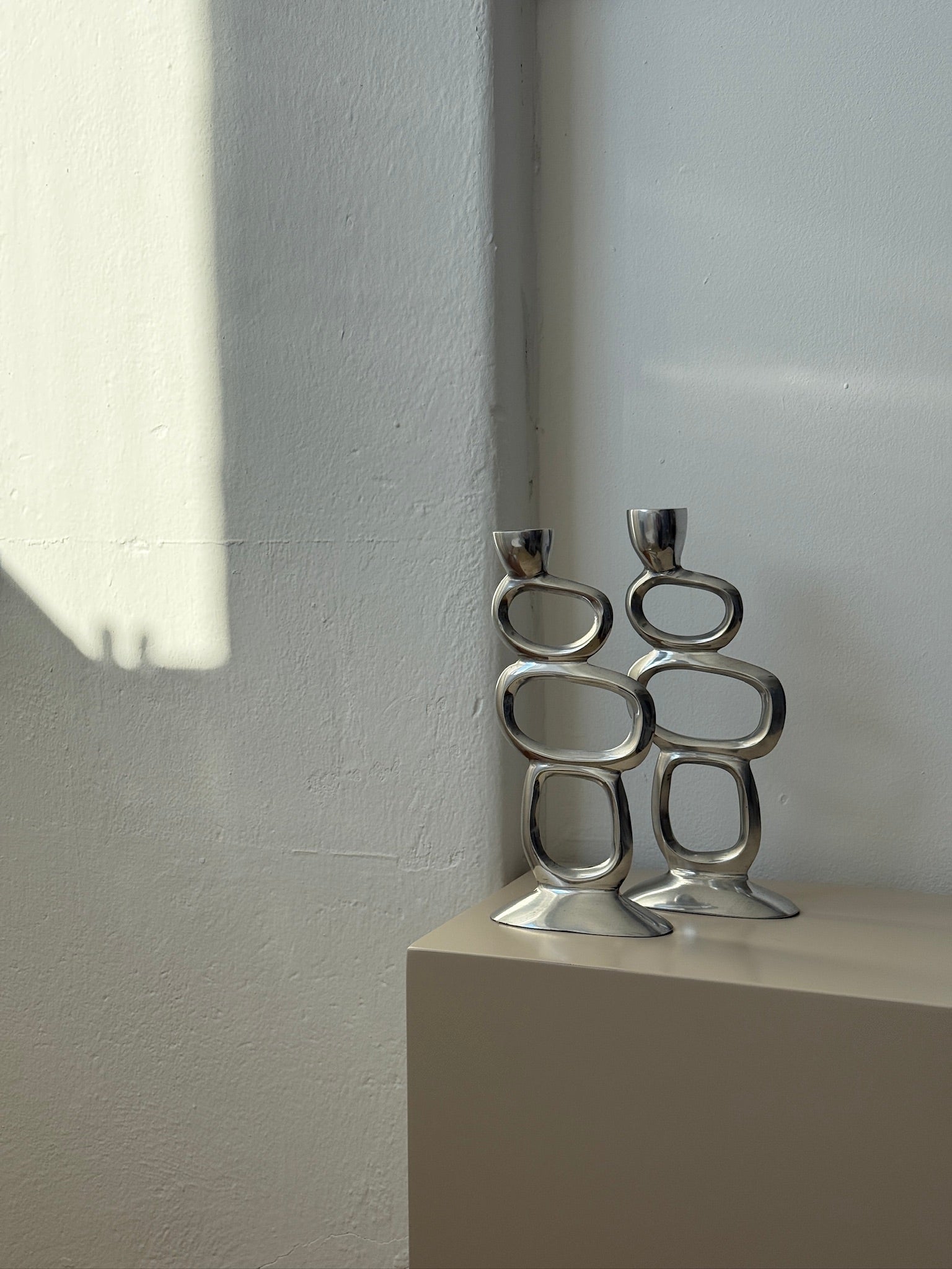 Unik vintage lysestage, designet af Matthew Hilton i 1970'erne. Fremstillet i aluminium og ligner en skulptur i sig selv. Virkelig smuk.