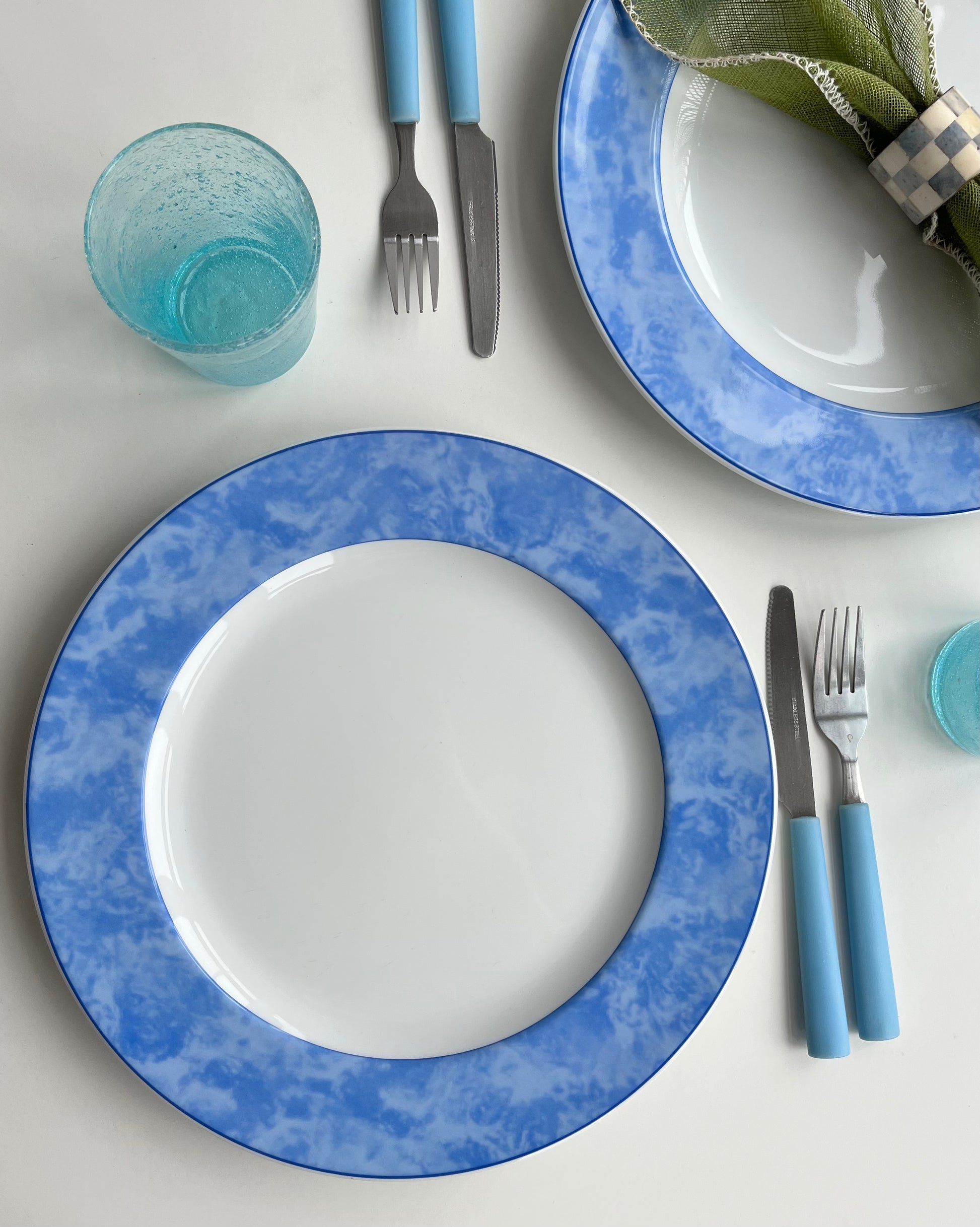 Søde tallerkner med lyseblå skyhimmel-lignende kant🌧️🪁