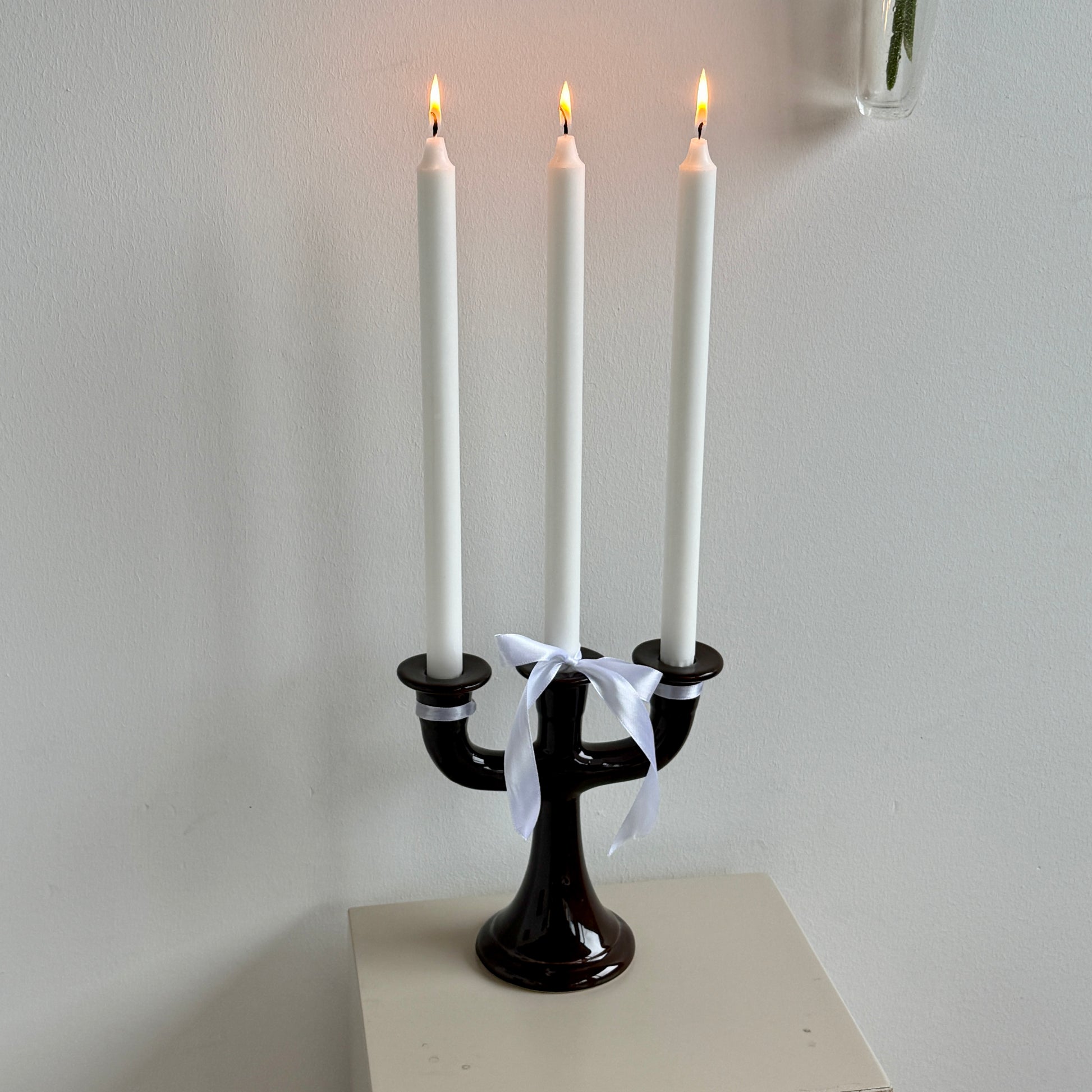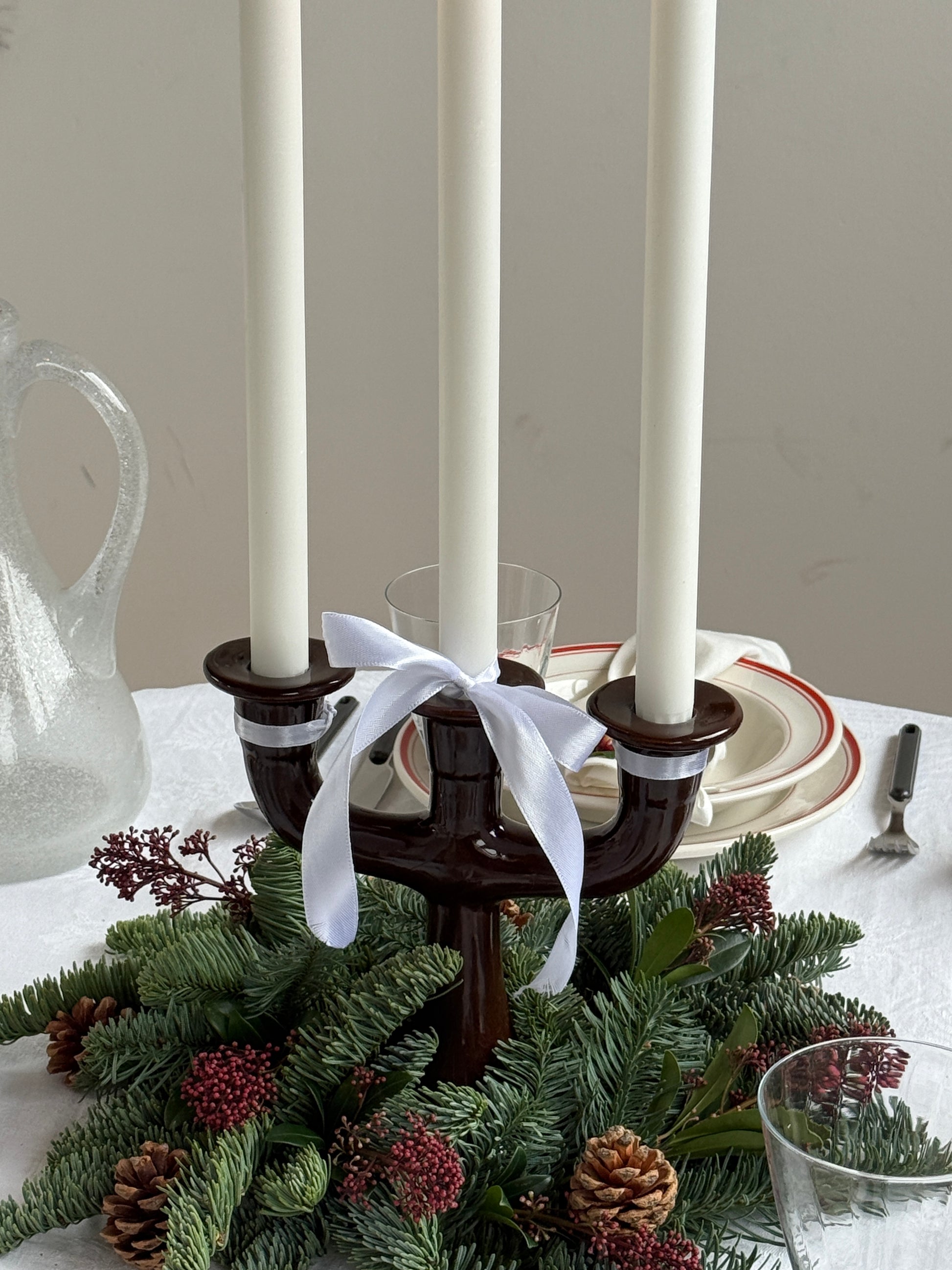 Den trearmede form gør den til et naturligt blikfang på spisebordet, i vindueskarmen eller på en kommode – både alene og som del af en opstilling. Den bliver så fin med en lille sløjfe omkring, men sælges uden sløjfe.