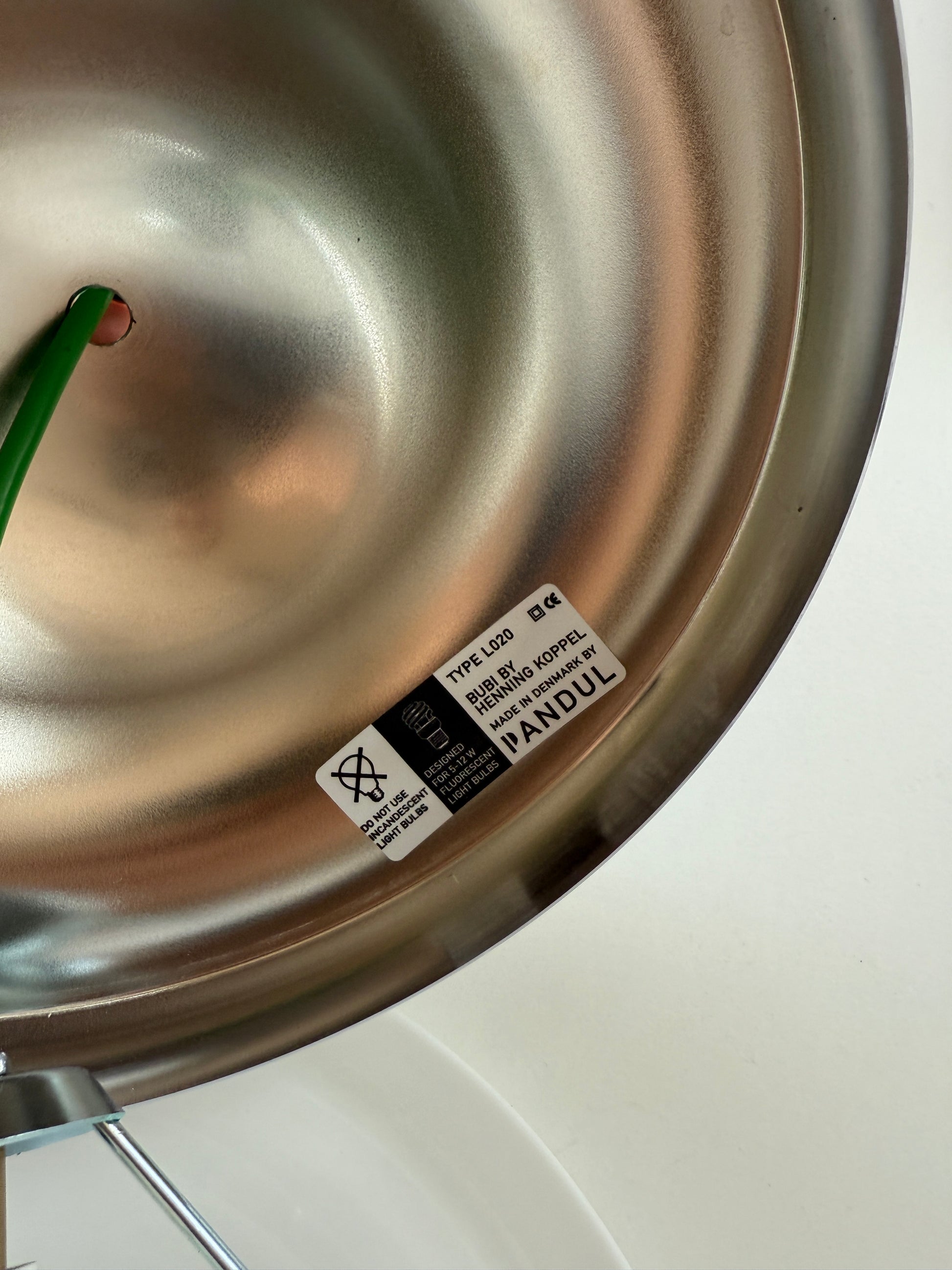 Smukke Bubi lamper designet af Henning Koppel i 1972 for Louis Poulsen. Den halvkugleformede lampe i krom og opal akryl minder om en lille UFO, der svæver i rummet. Giver et dejligt lys gennem den hvide akrylskærm, mens den blanke overdel i krom skaber smukke reflekser. Det gør lampen både funktionel og dekorativ – et designikon med rødder i dansk designhistorie.