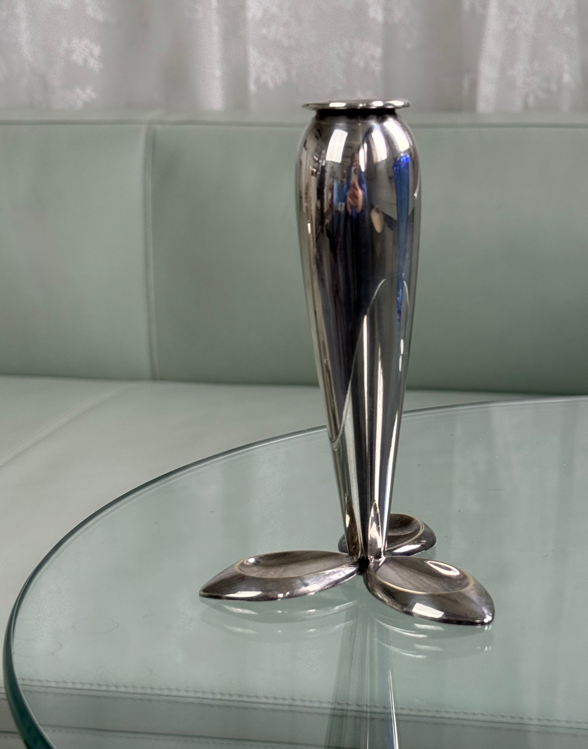 Smuk og enkel solifleur vase i sølvlook med et elegant og slankt design. Vasen er skabt til én enkelt stilk og fremhæver blomsten på fineste vis – perfekt til fx en ranunkel, rose eller gren.