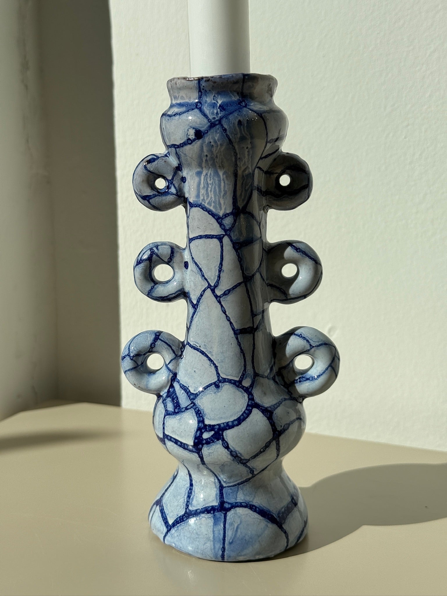 Håndlavet keramik i en charmerende form med alsidige anvendelsesmuligheder. Designet gør den ideel både som lysestage og som vase.