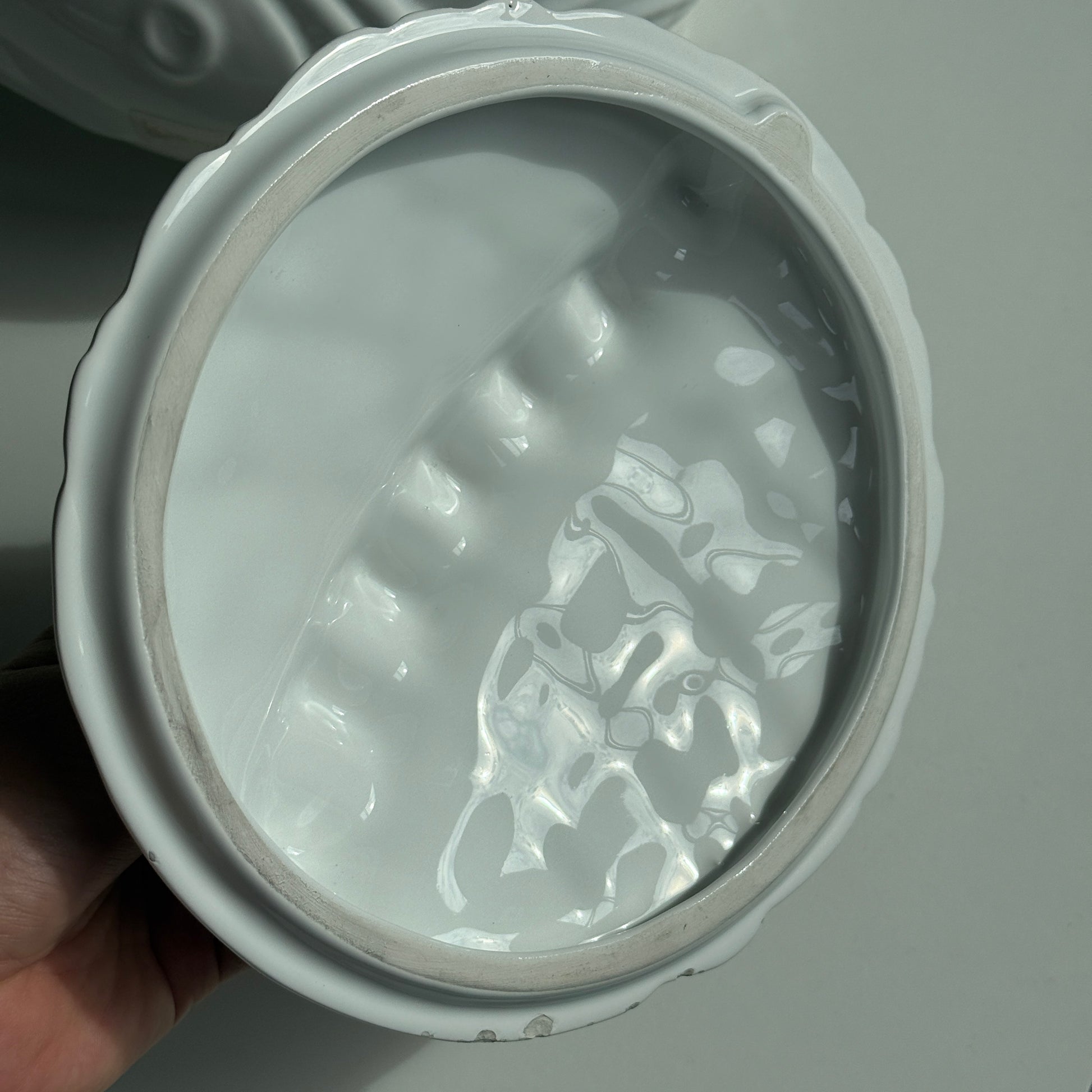 Stor terrin med låg – L: 30 cm | B: 25 cm | H: 18 cm. Bemærk: har nag i låget og under halen - se billede.