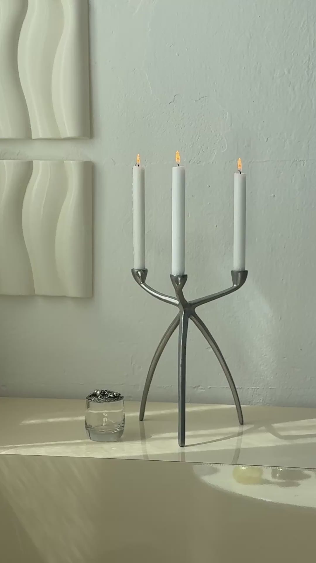 Lysestage med tre ben, metal