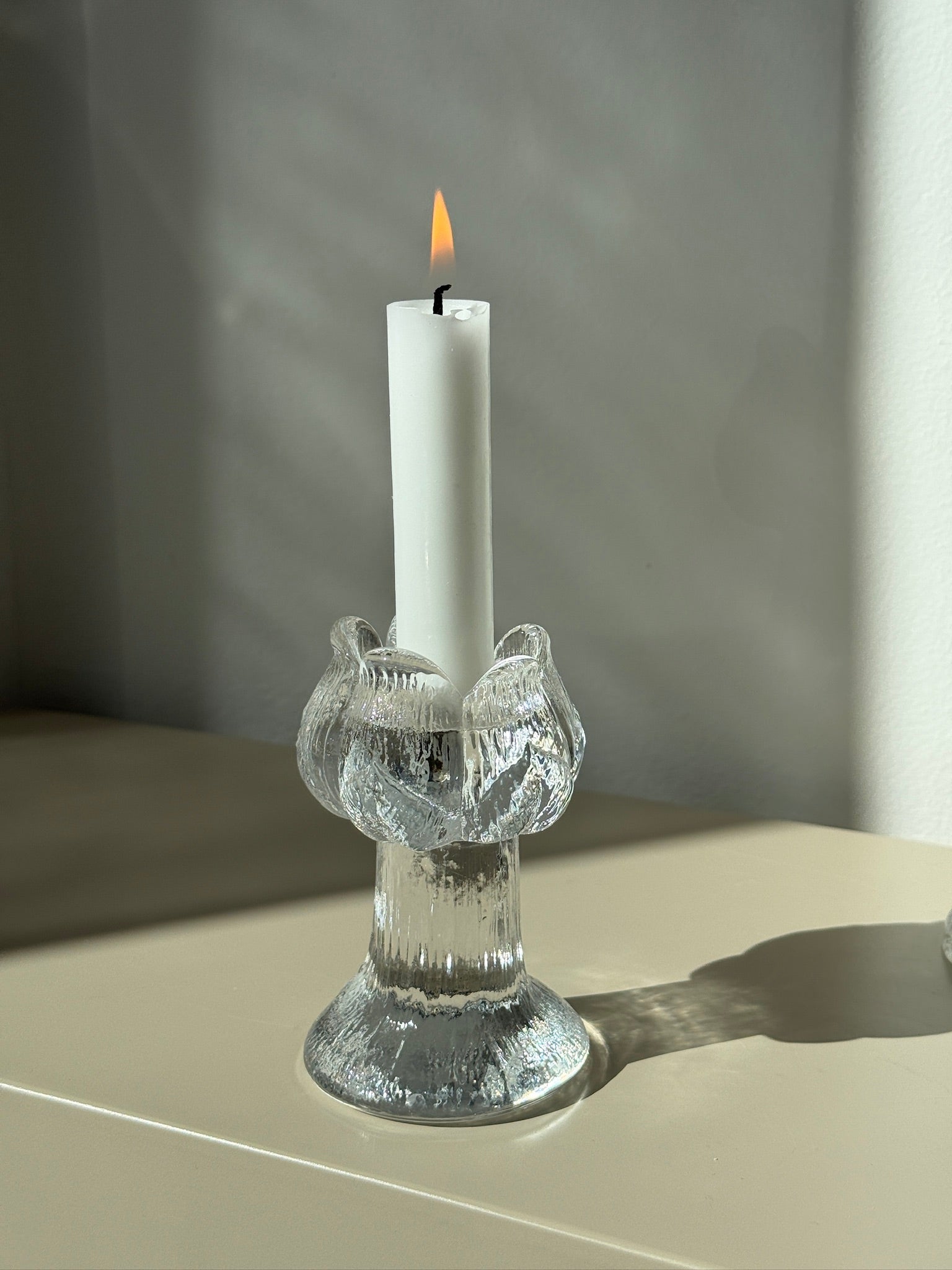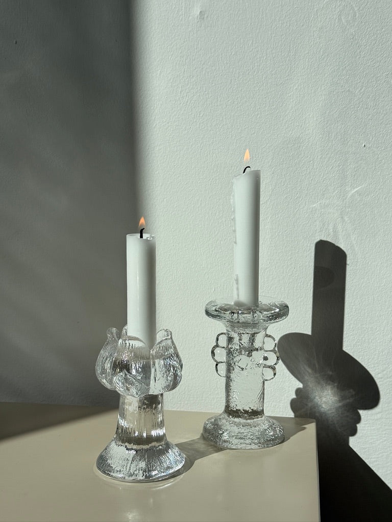 Smuk lysestage formet som en tulipan. Fremstillet i glas.