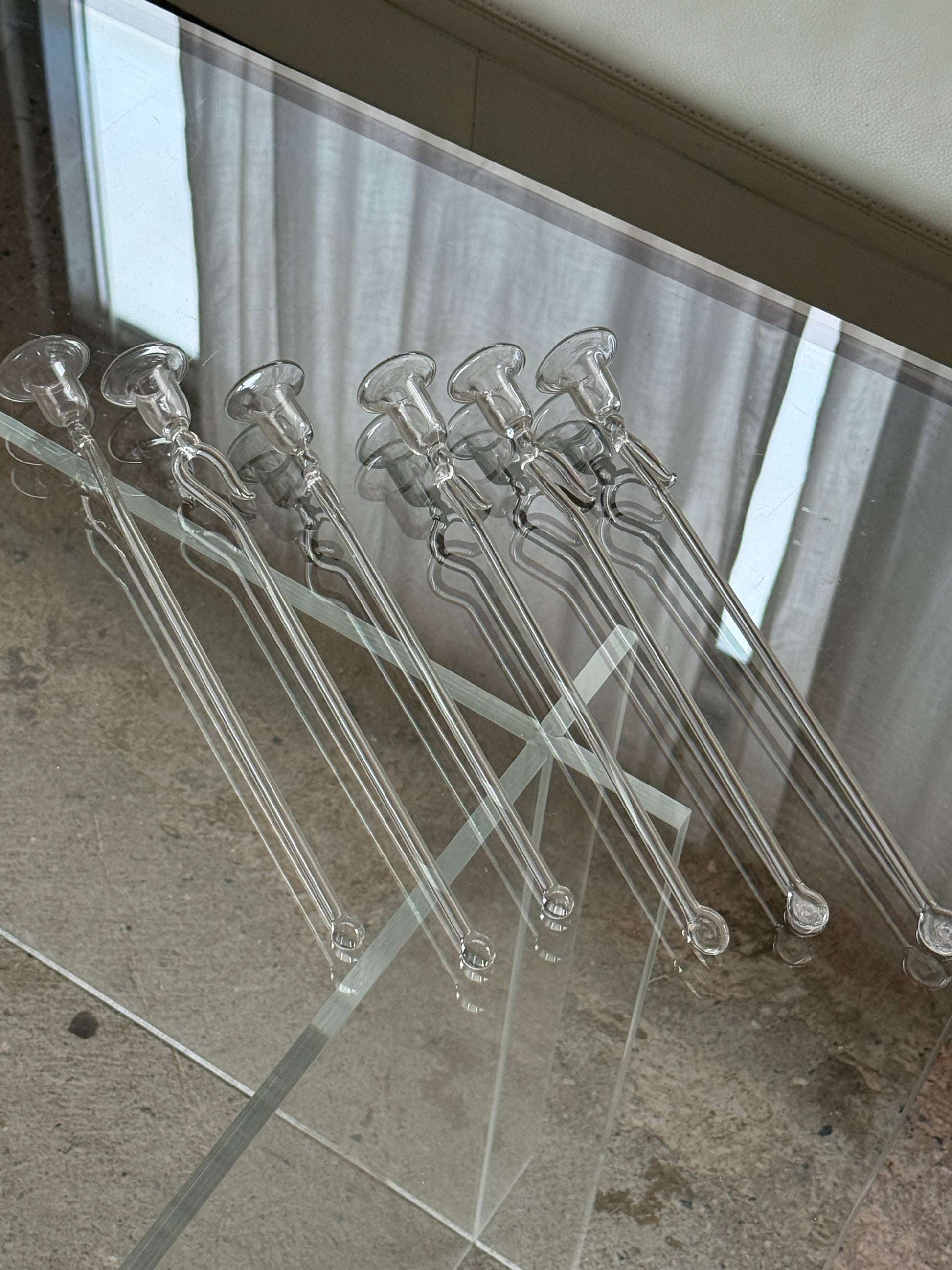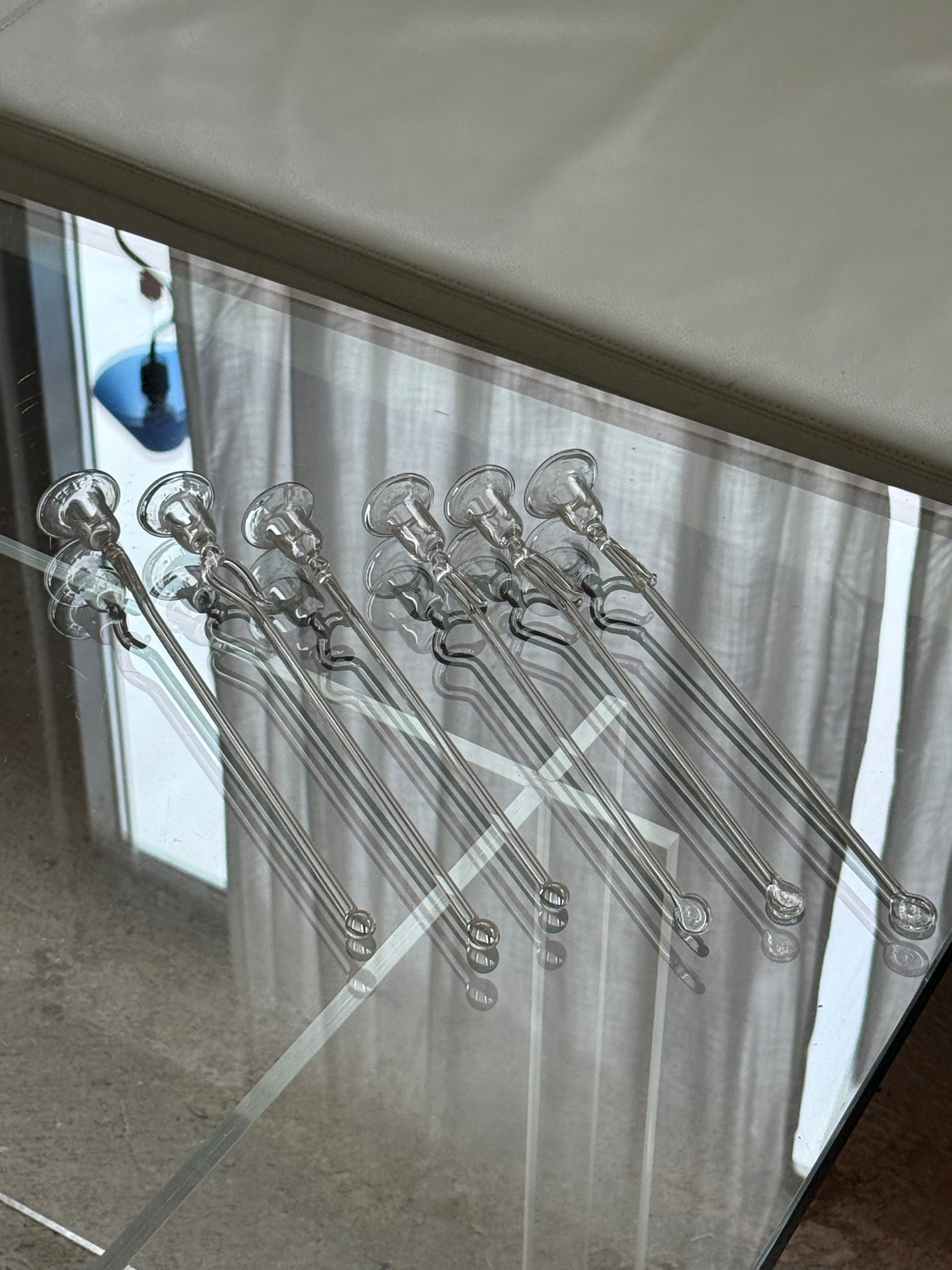 Smukt og unikt sæt med seks mundblæste lyseholdere i klart glas – perfekte til juletræet, vintergrene eller som elegante detaljer i juleopdækningen.