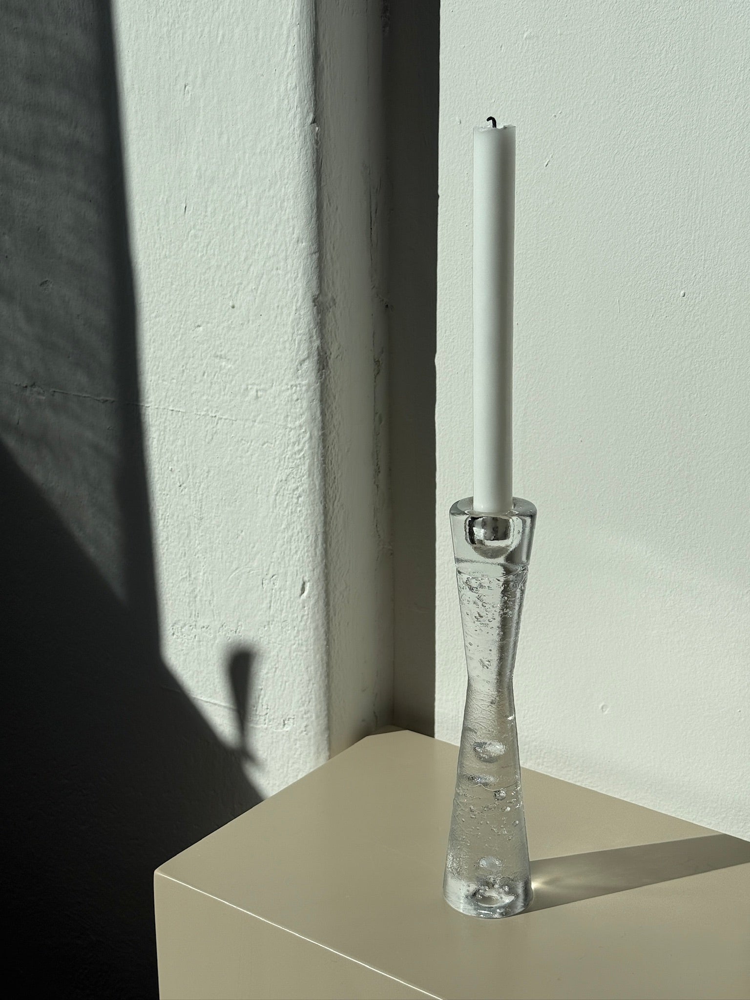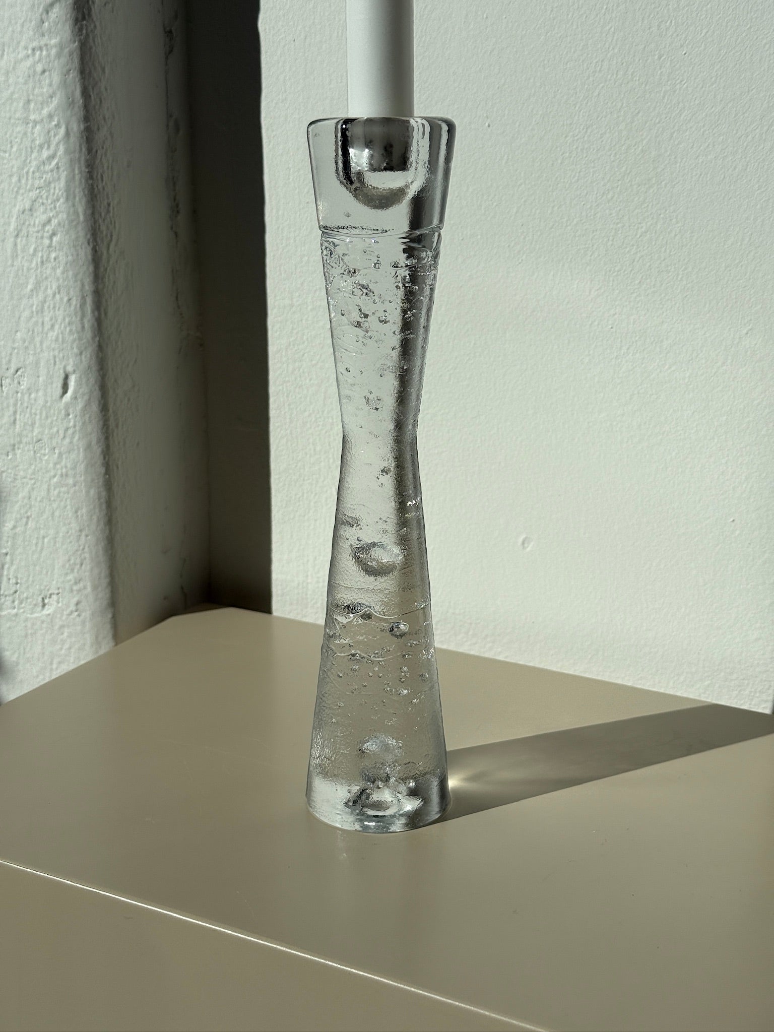 Massiv lysestage fra den finske designer Timo Sarpaneva med skønne bobler i glas. Perfekt stand.