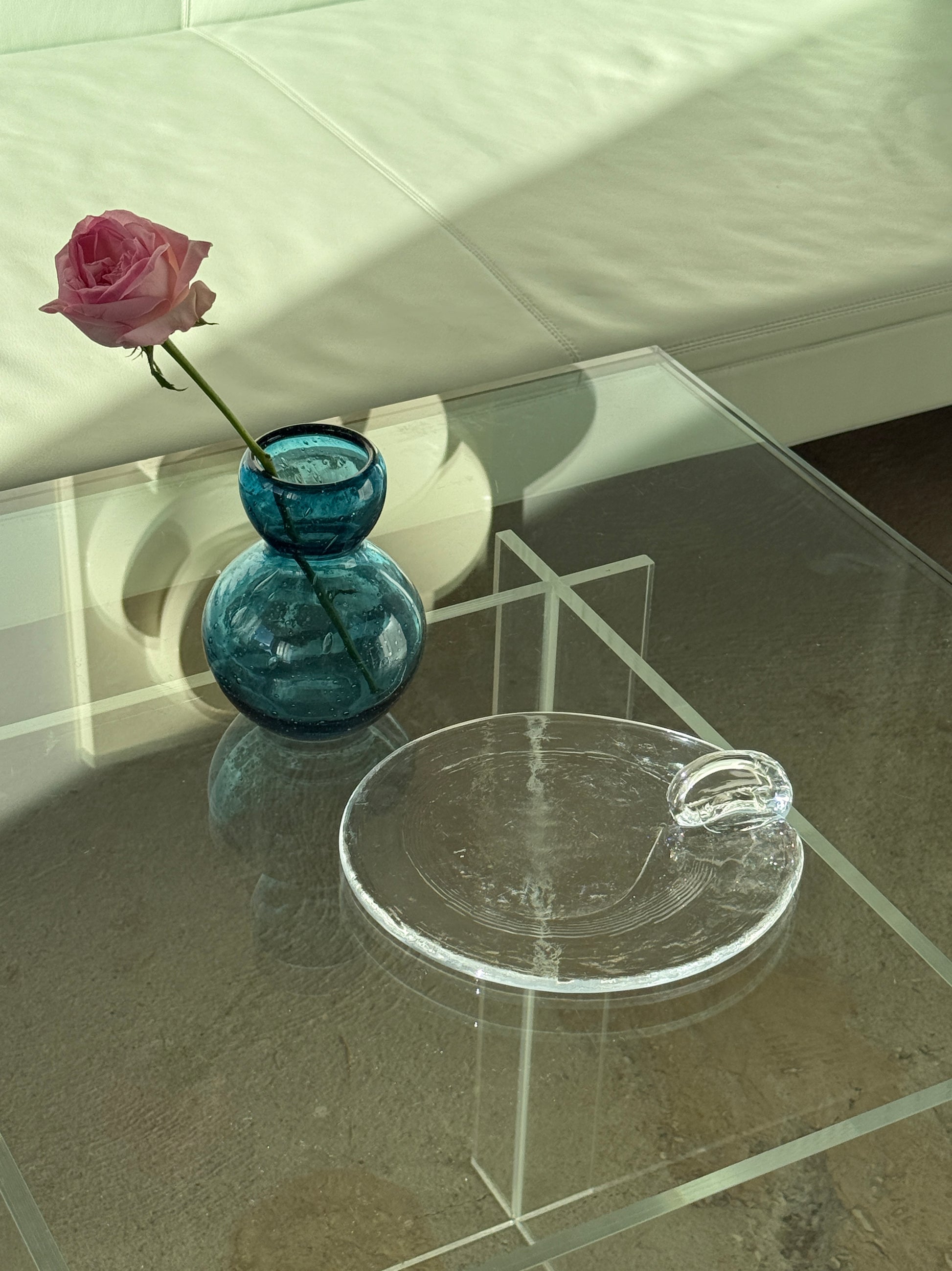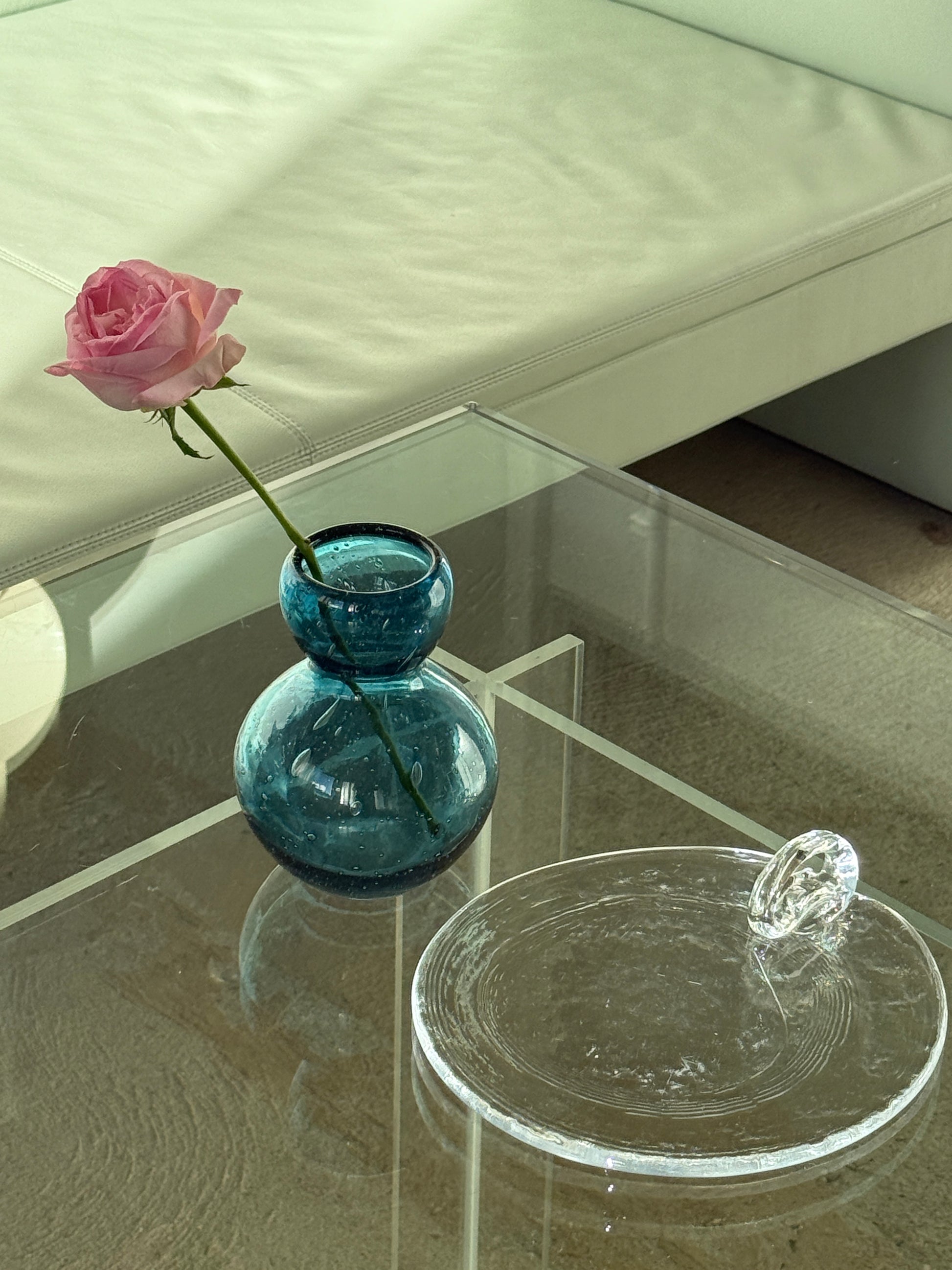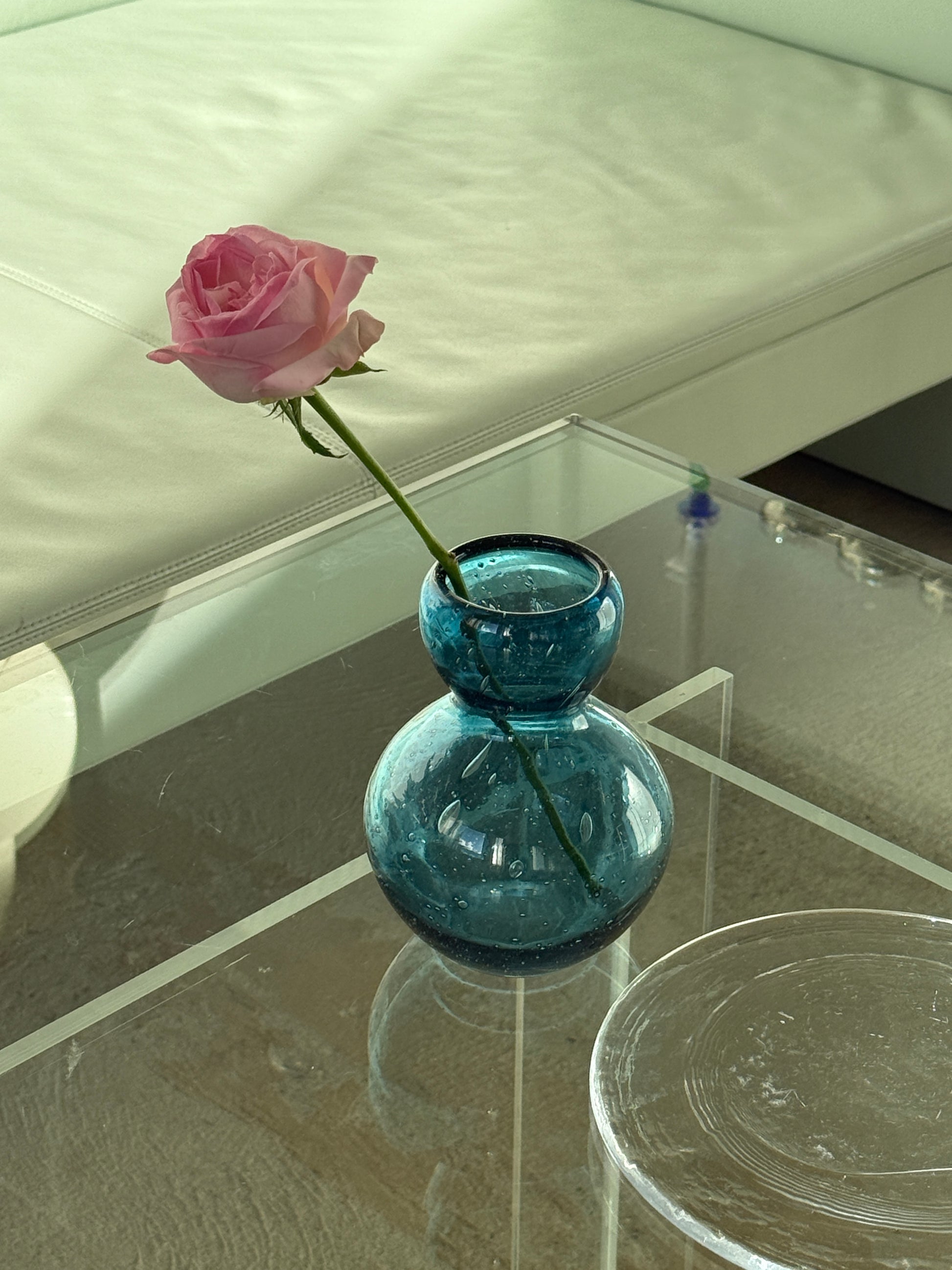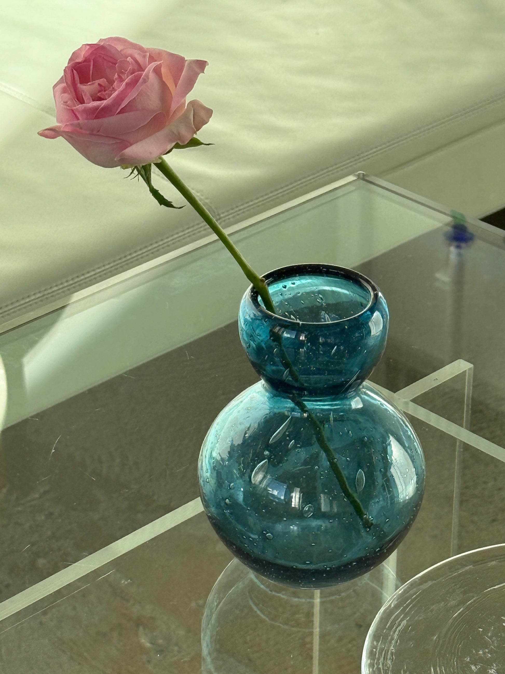 Virkelig smuk, mundblæst glasvase i mørkeblå. Helt perfekt stand.