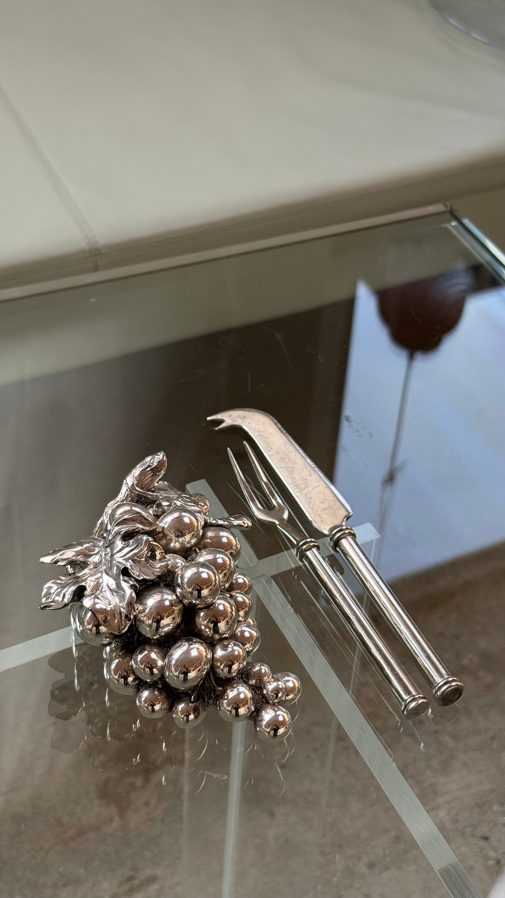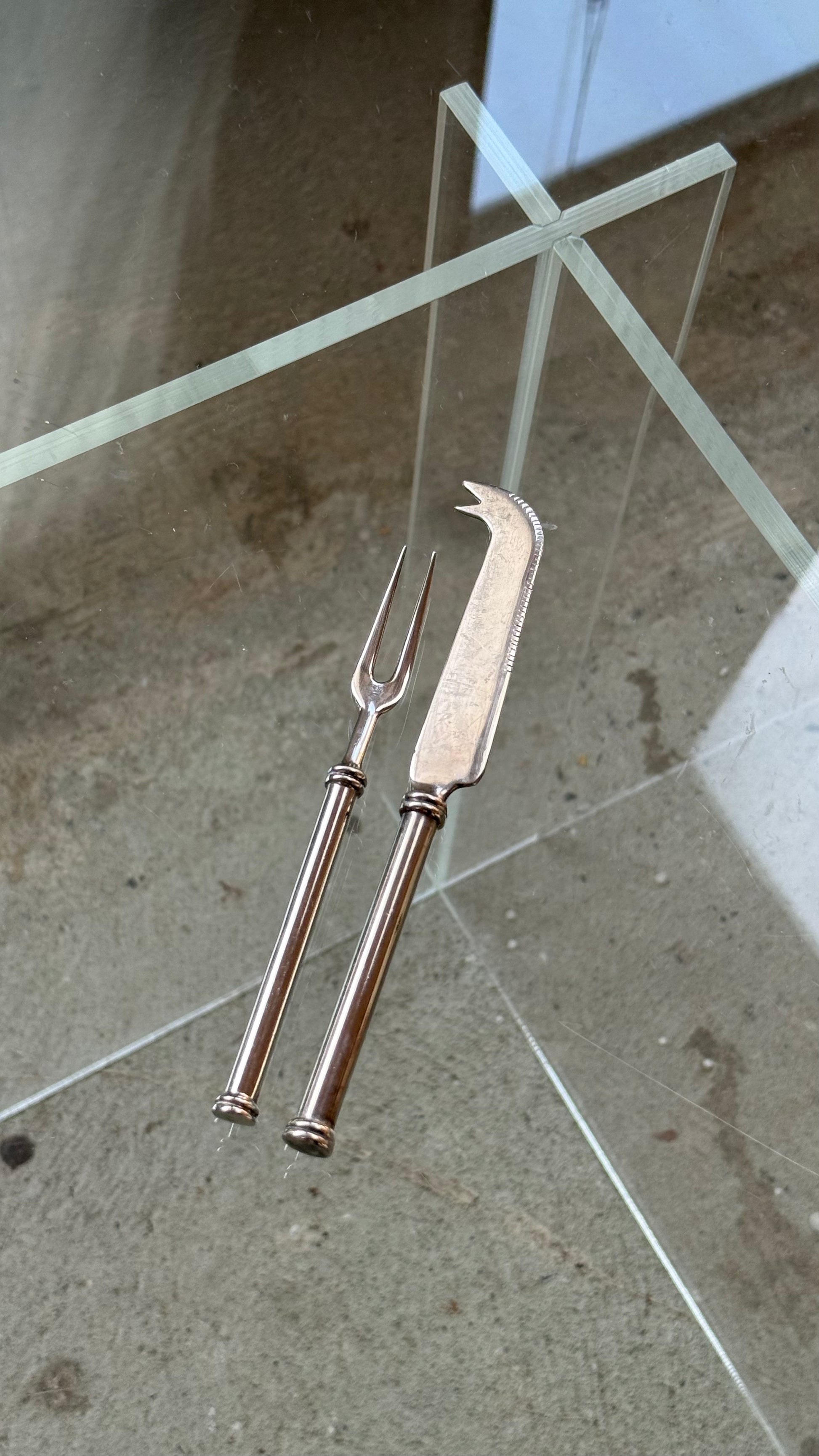 Elegant serveringsbestik i rustfrit stål bestående af kniv og gaffel med klassisk, tidløst udtryk. Bestikket har en enkel og stilren form, der gør det let at kombinere med både moderne og mere traditionelt service. Perfekt til servering af pålæg, oste, kager eller mindre anretninger.