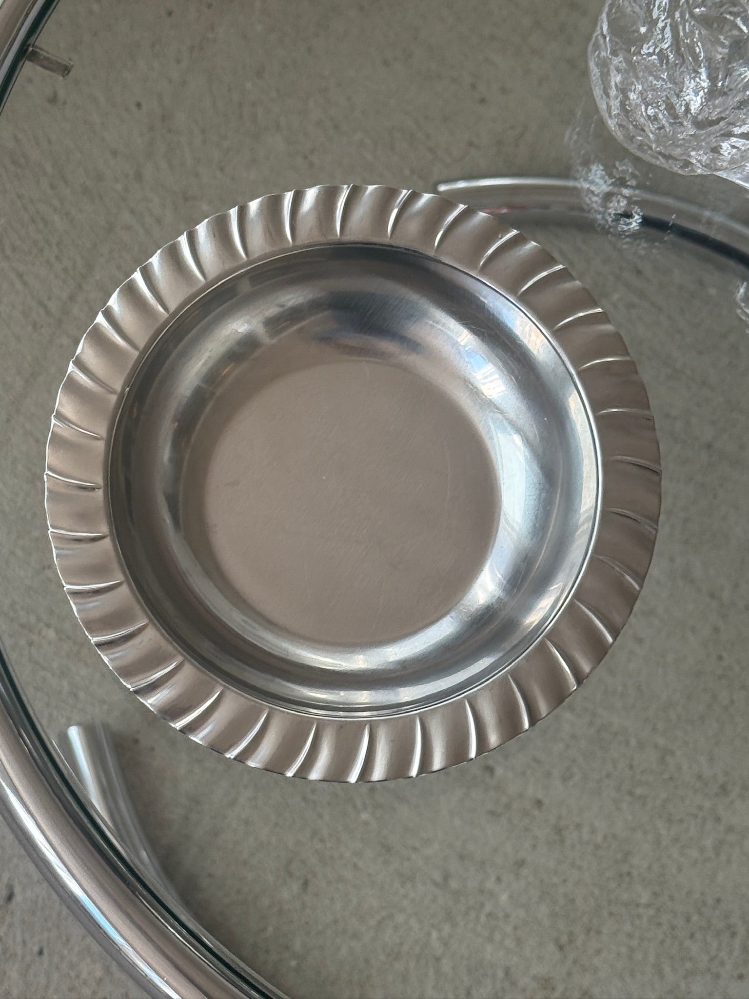 Enkel og elegant mellem skål i rustfrit stål med rillet kant. Velegnet til servering af snacks, nødder eller som pynt på bordet.