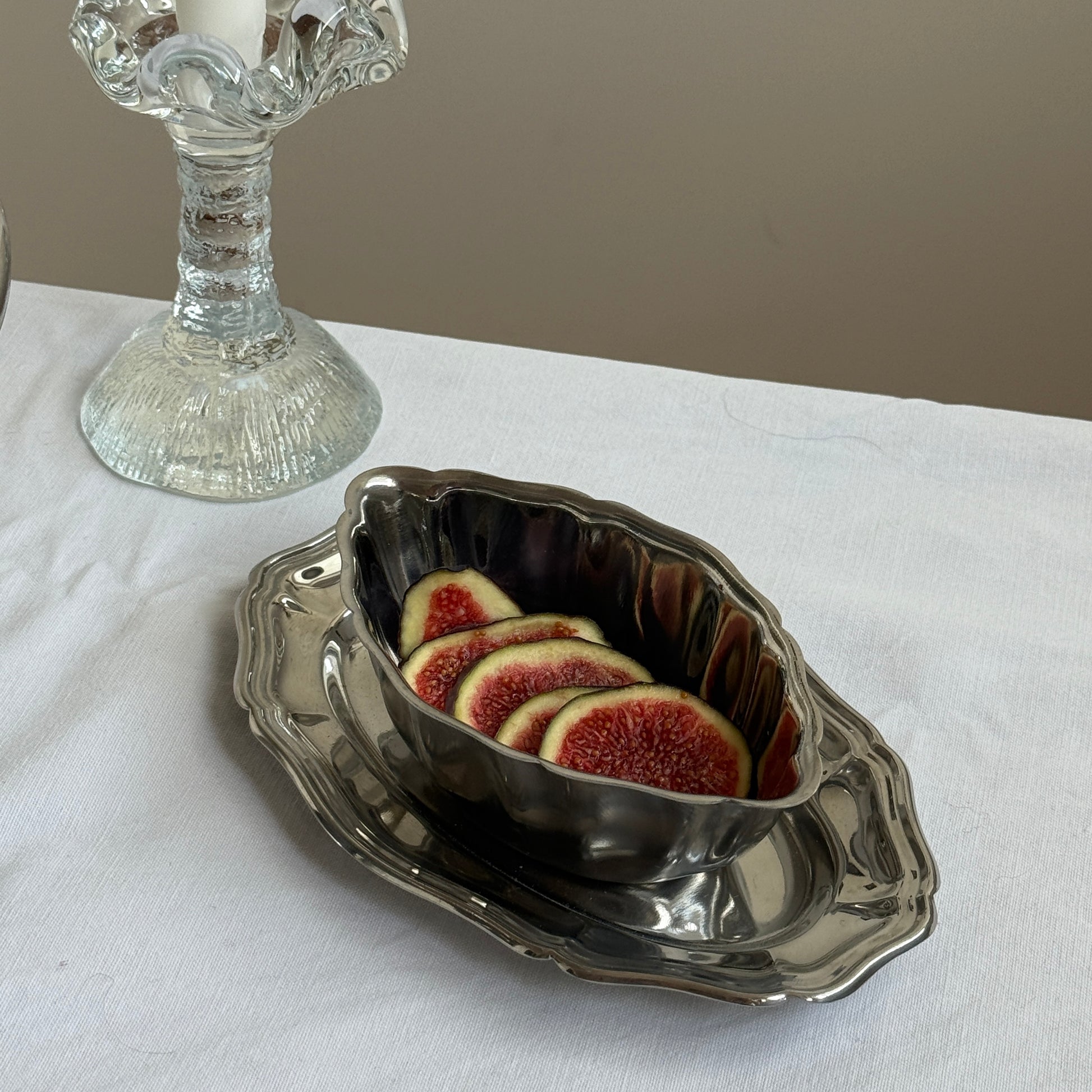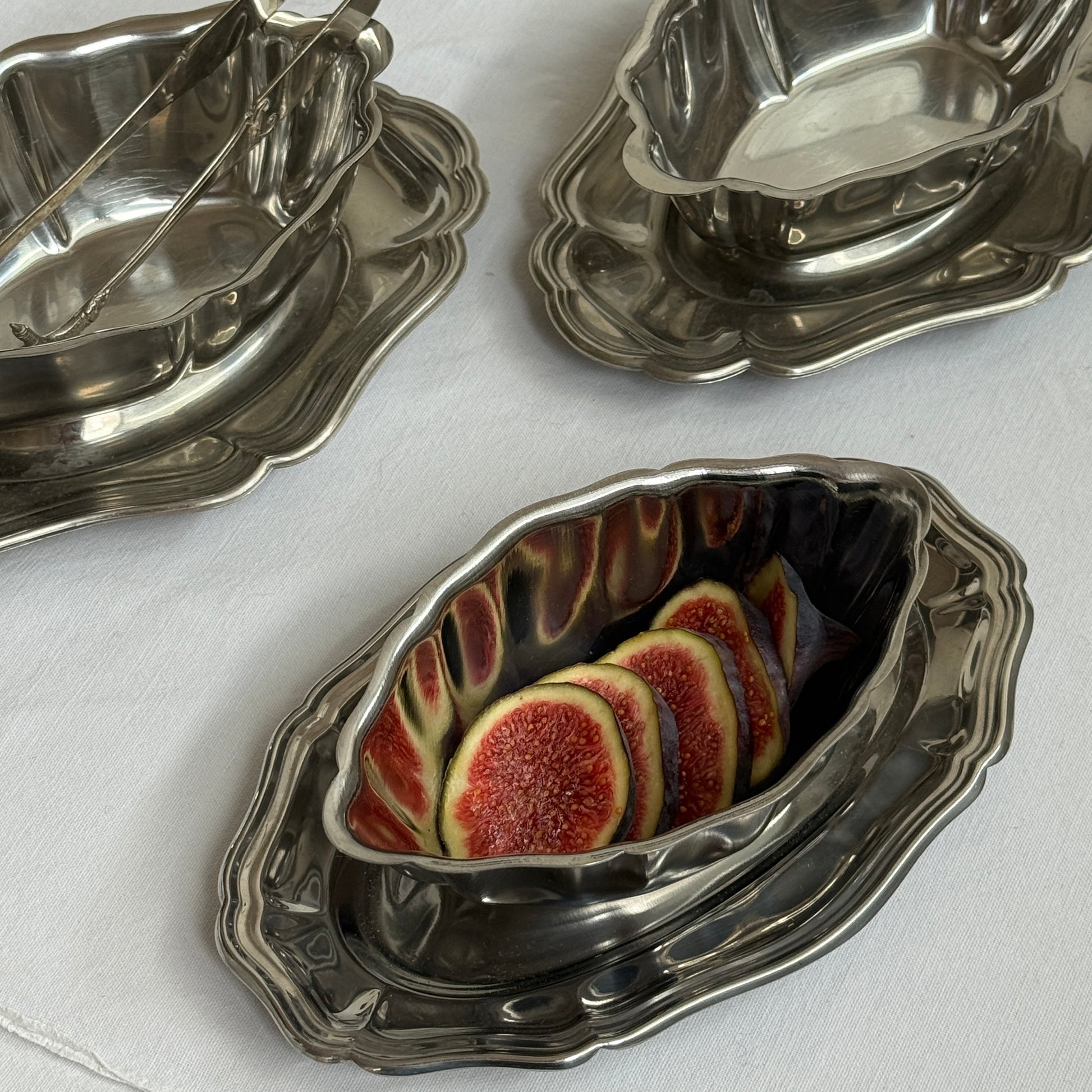 Smukke, klassiske sovseskåle i rustfrit stål, hvor skålen er smedet sammen med underfadet – et elegant og funktionelt design. Perfekte til servering ved både hverdags- og festbordet. De har den fineste formgivning med bløde buer og et tidløst udtryk.