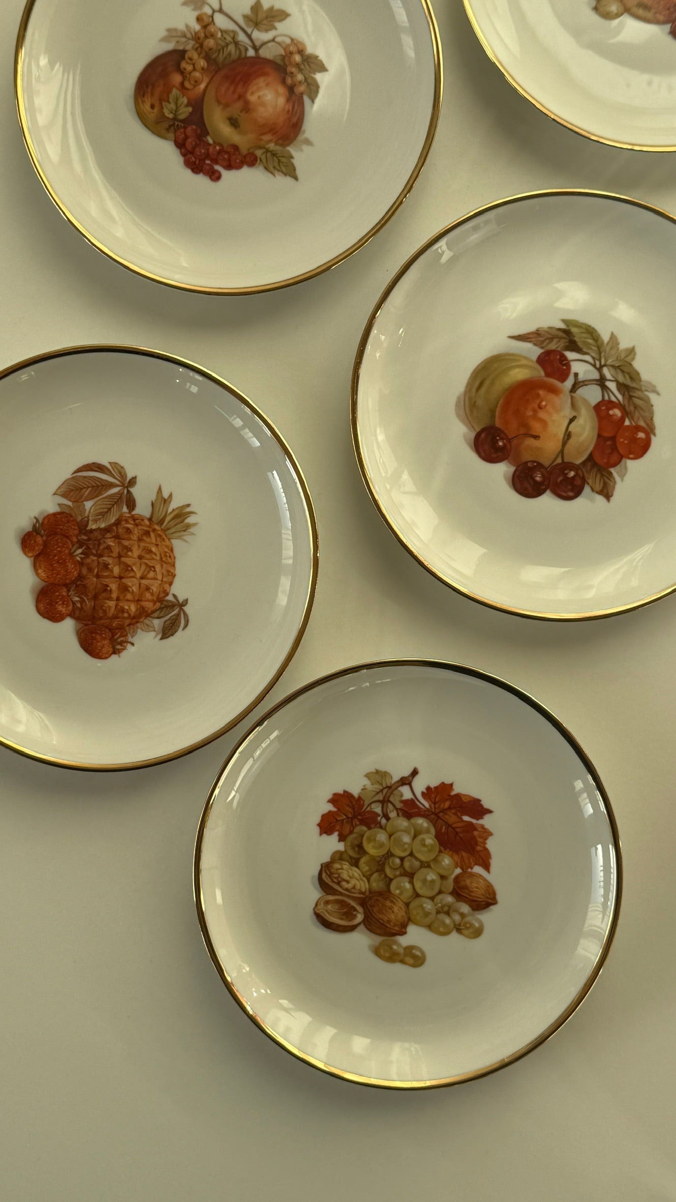 Desserttallerkner med frugtmotiv, Lyngby Porcelæn (5 stk)