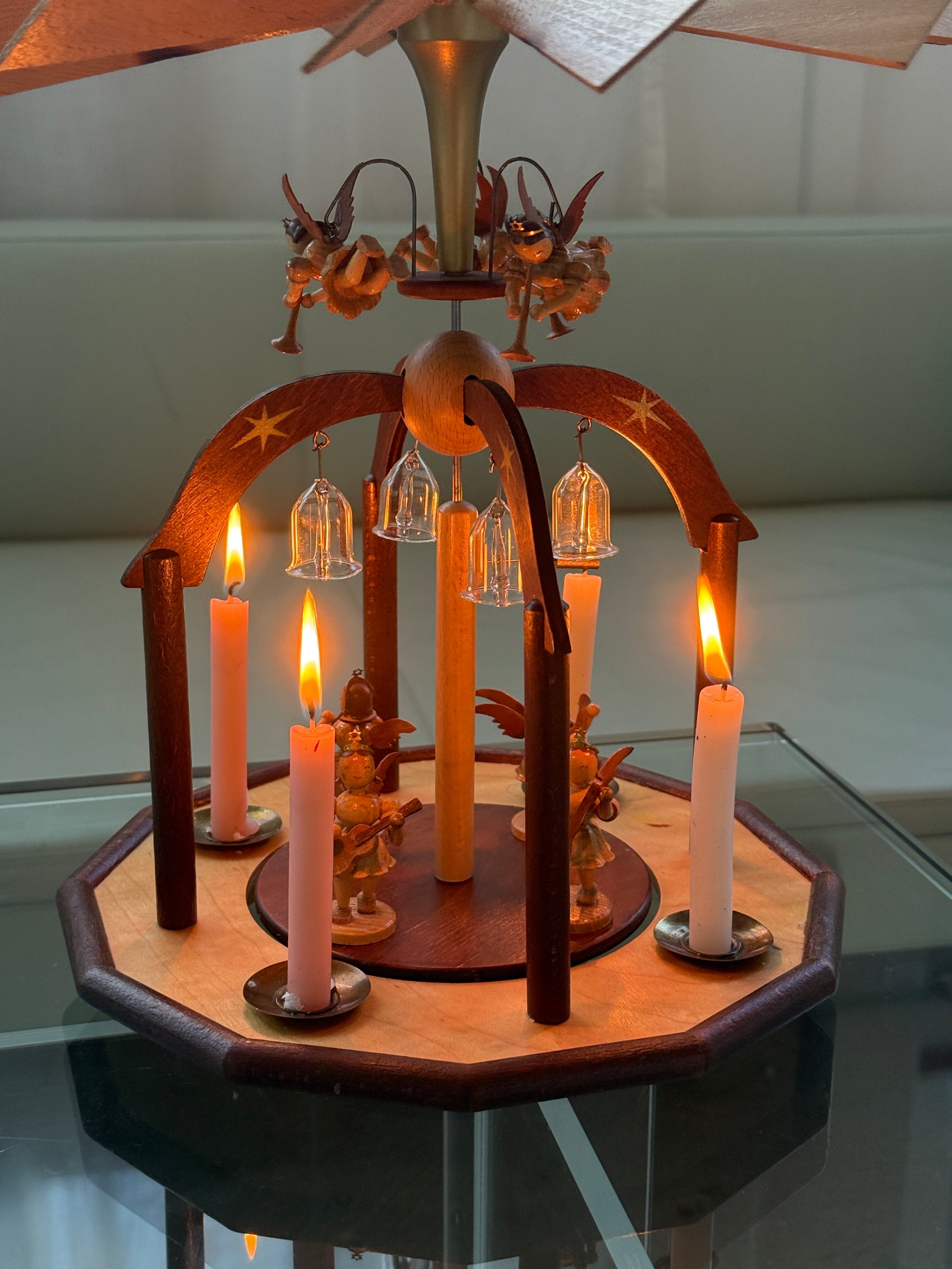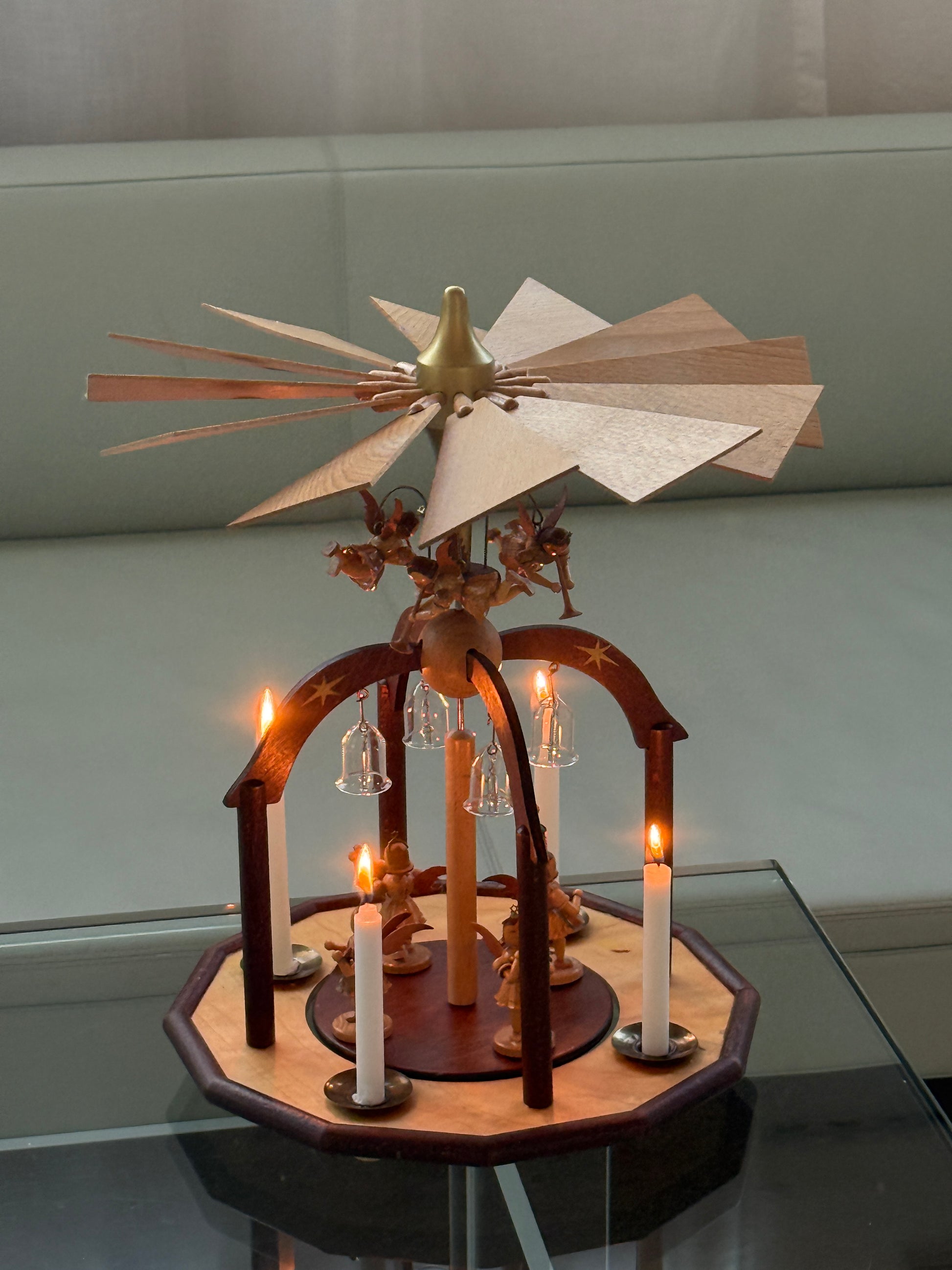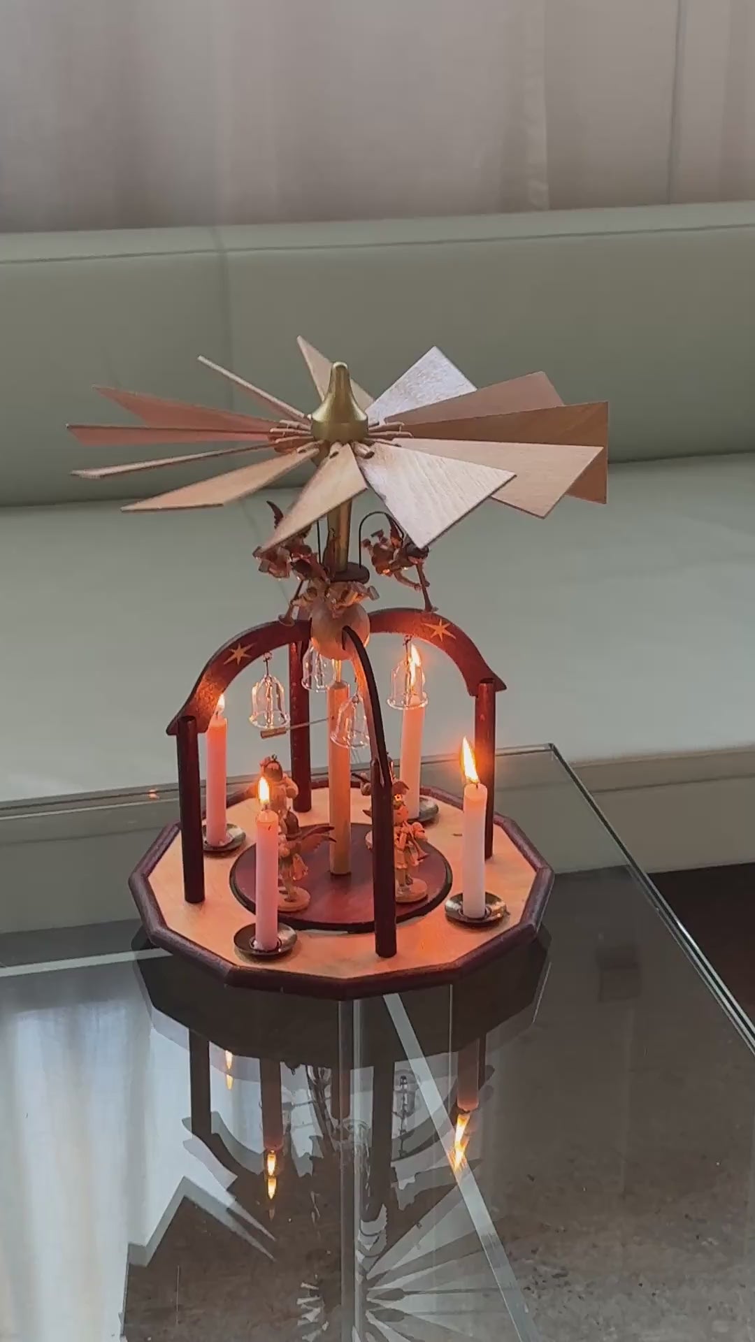 En unik og meget dekorativ Erzgebirge-karussel, der både spiller på nostalgi og kvalitet – et oplagt samlerobjekt og et smukt højdepunkt i julepynten.