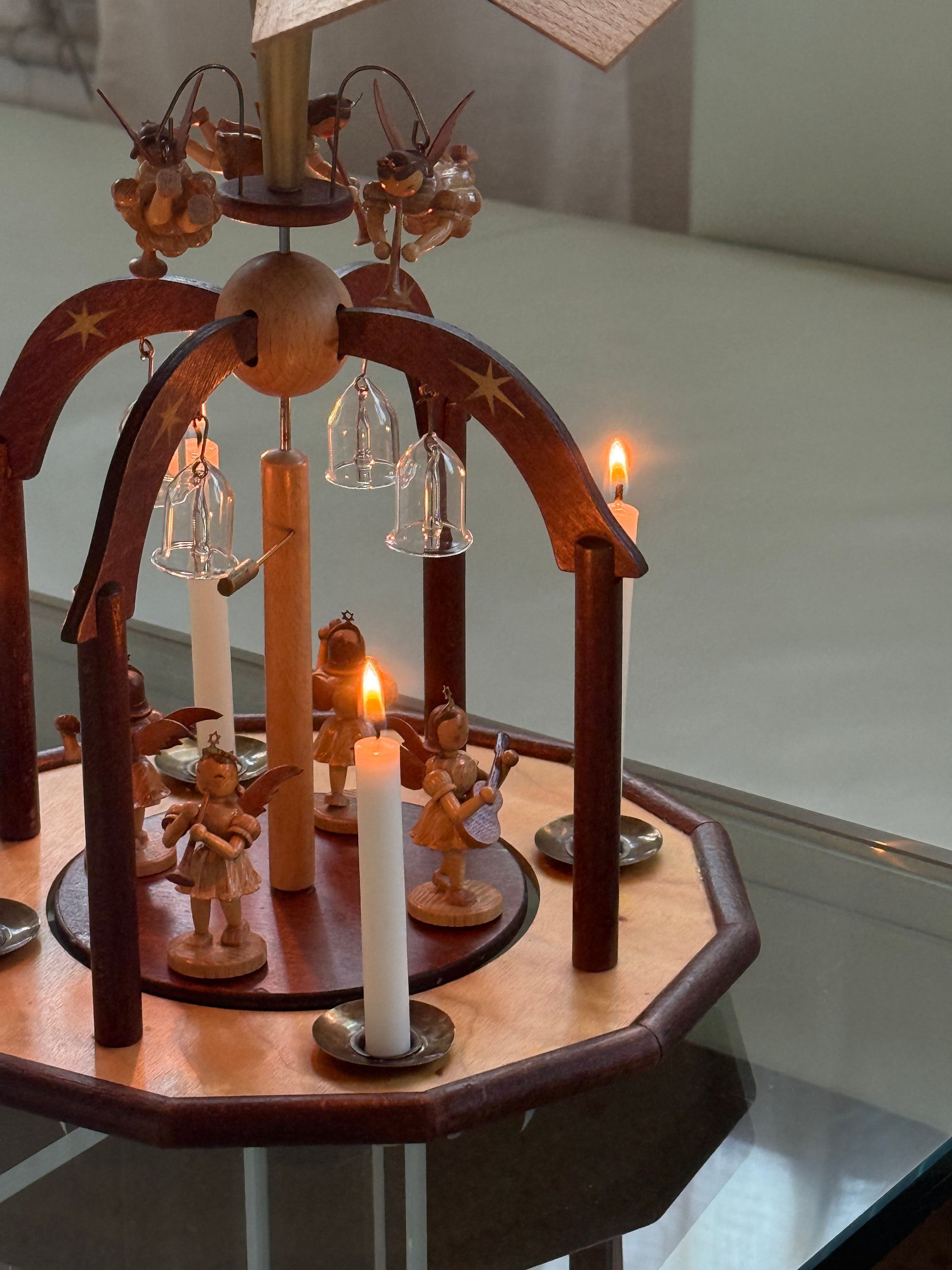 Vintage Erzgebirge julekarrusel m. englekor og klokker