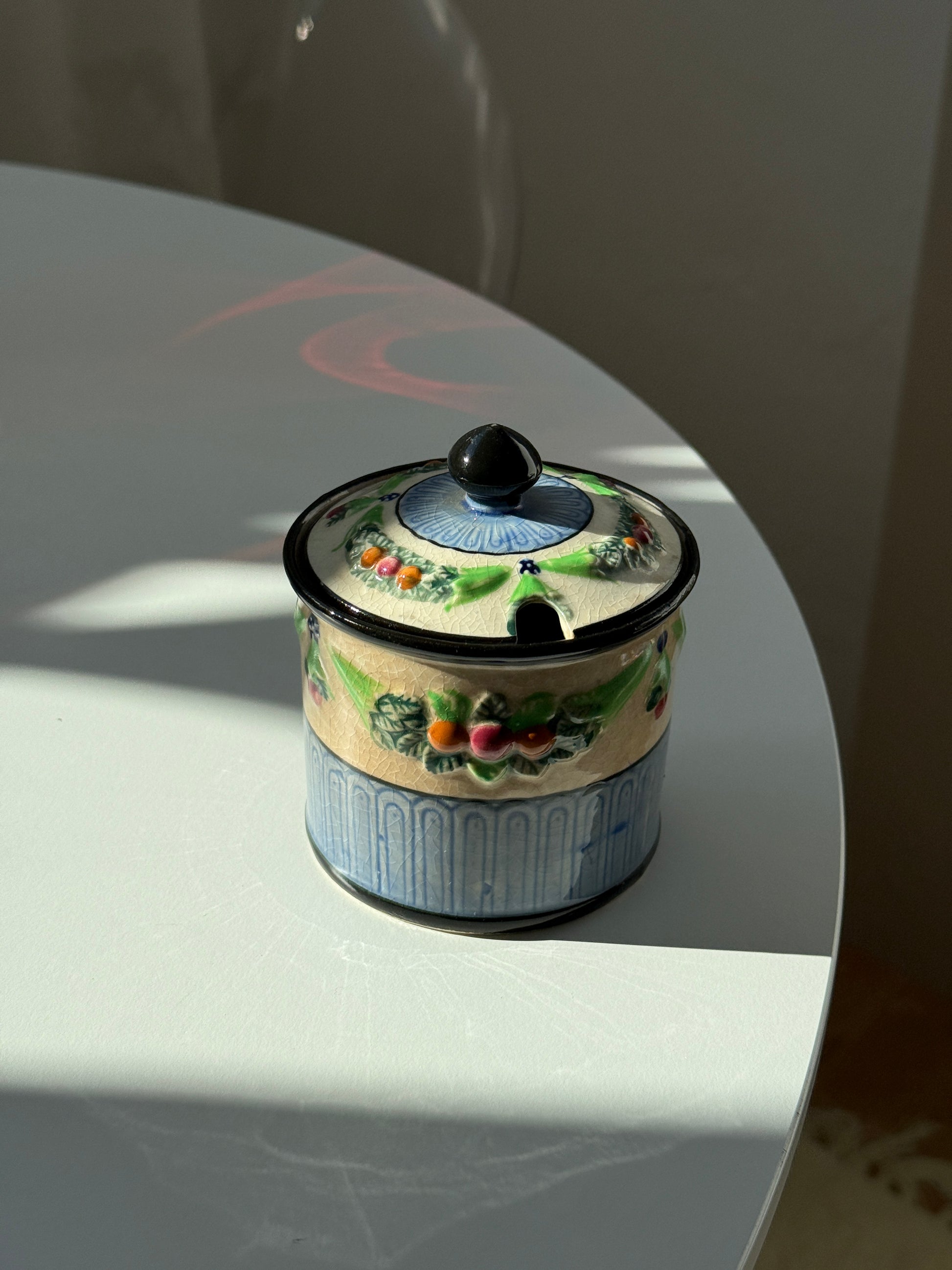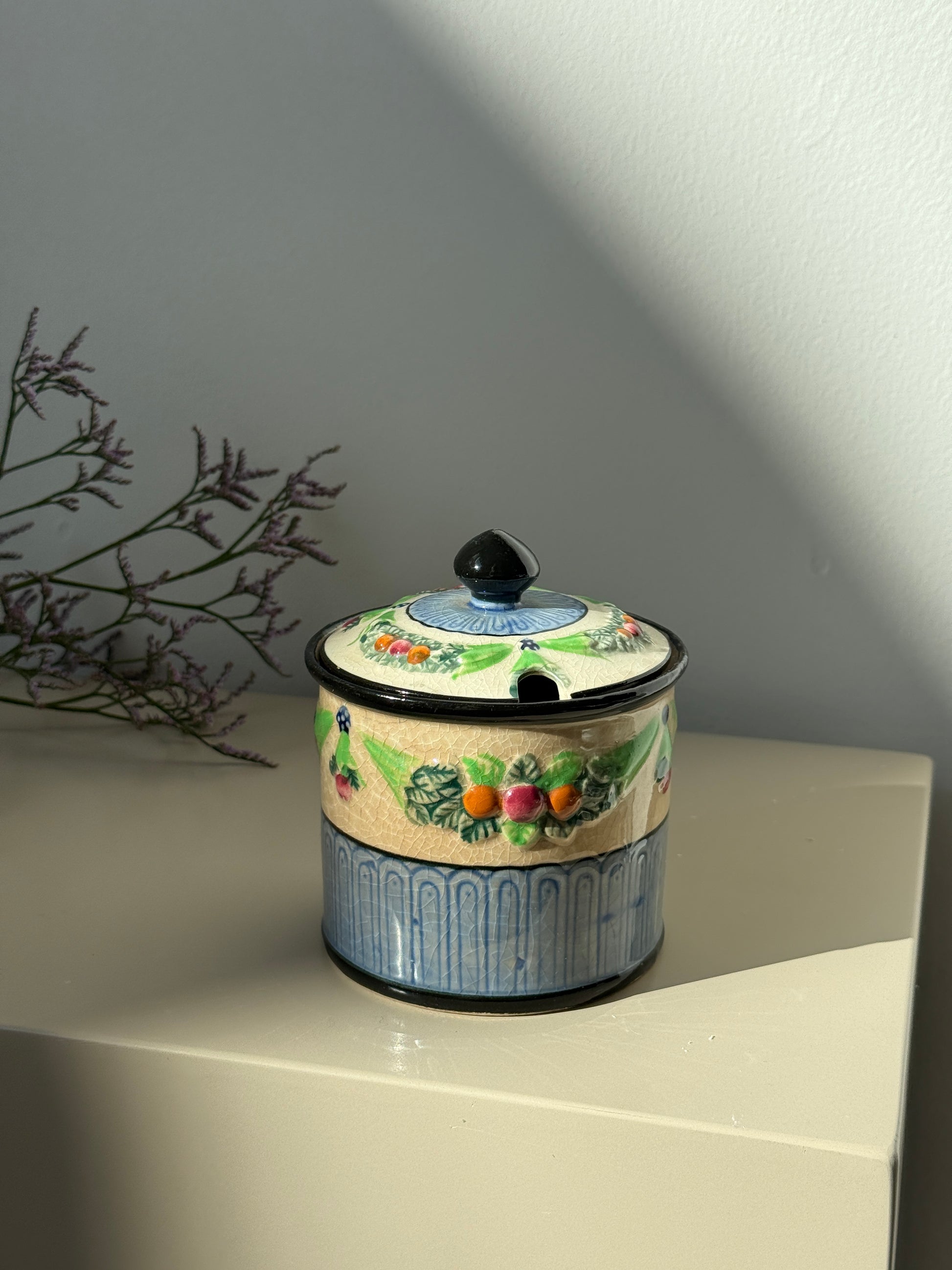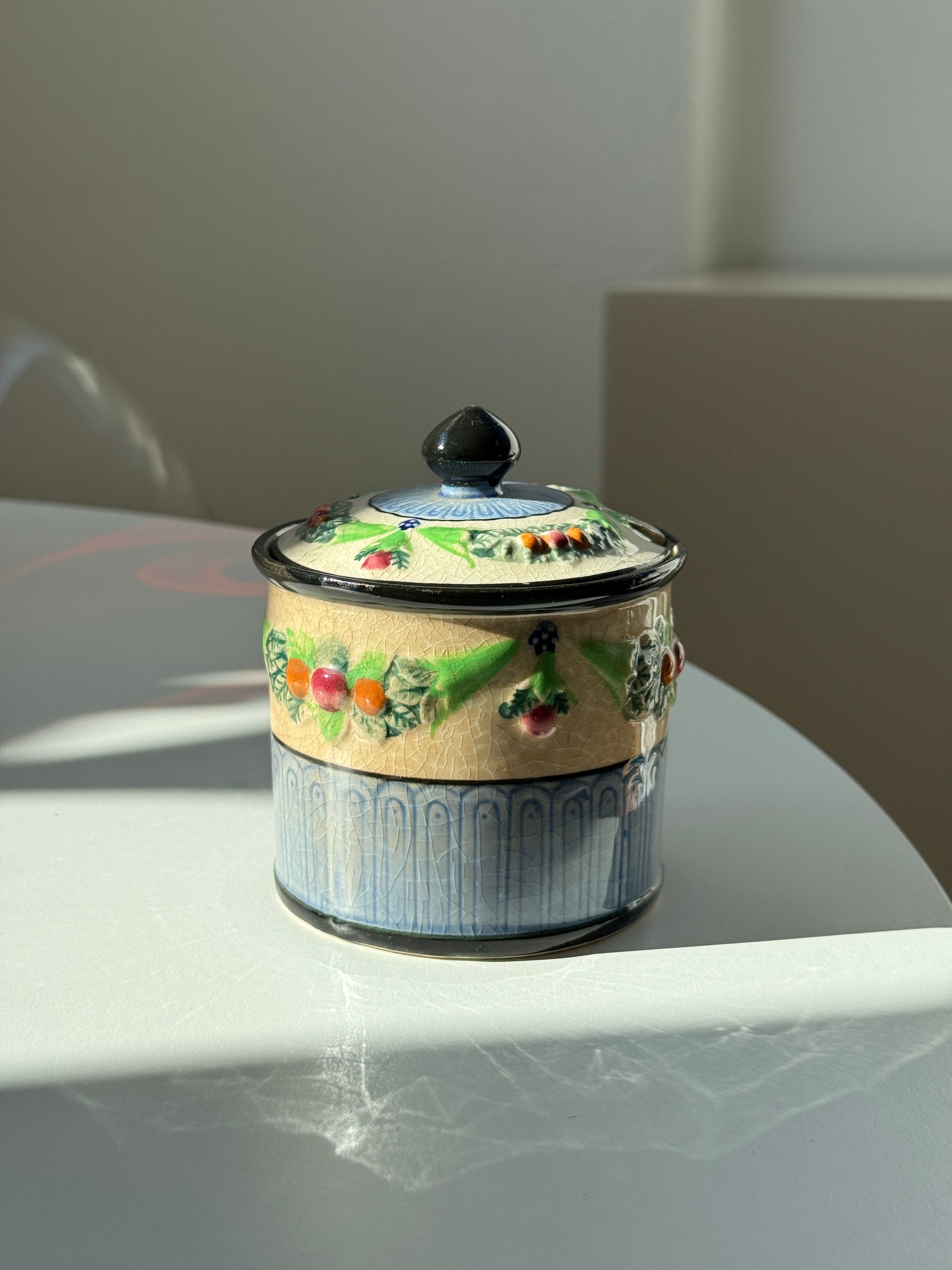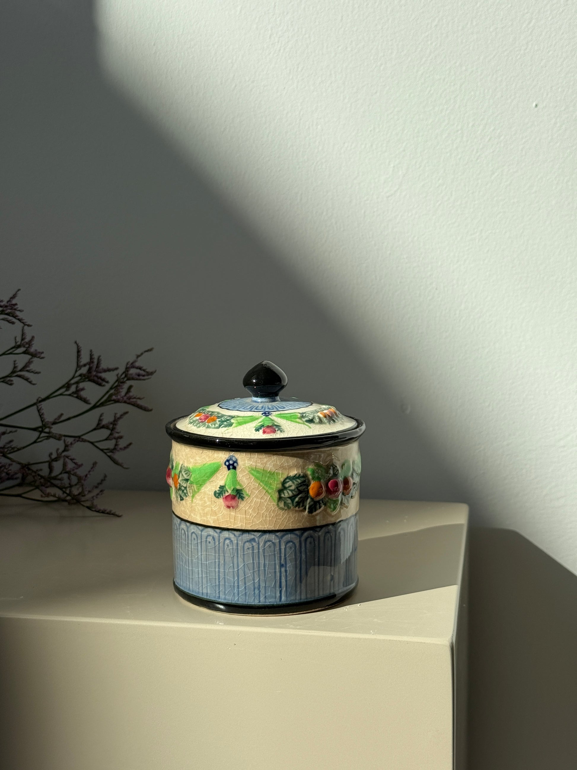 Marutomo Ware keramik krukke/sukkerskål fra Japan 1920-30'erne. I super smuk stand med krakeleringer. Fundet i England.