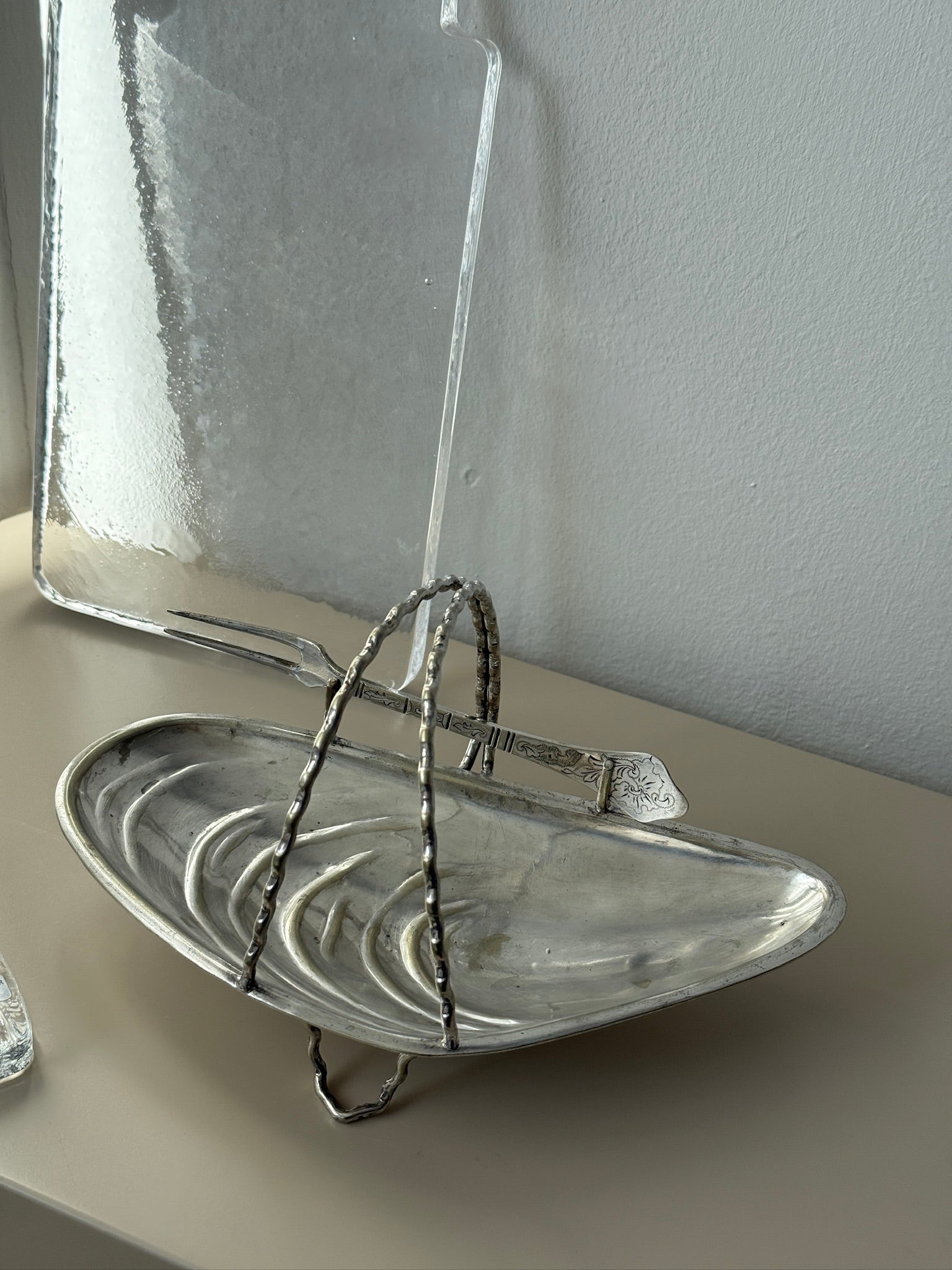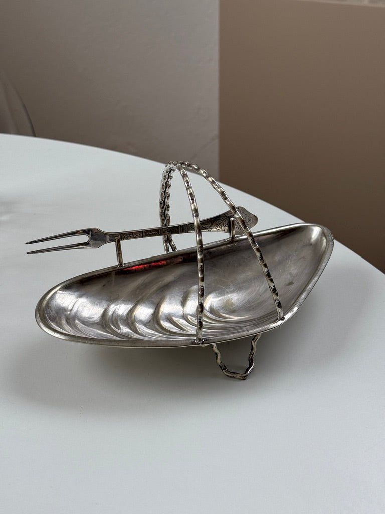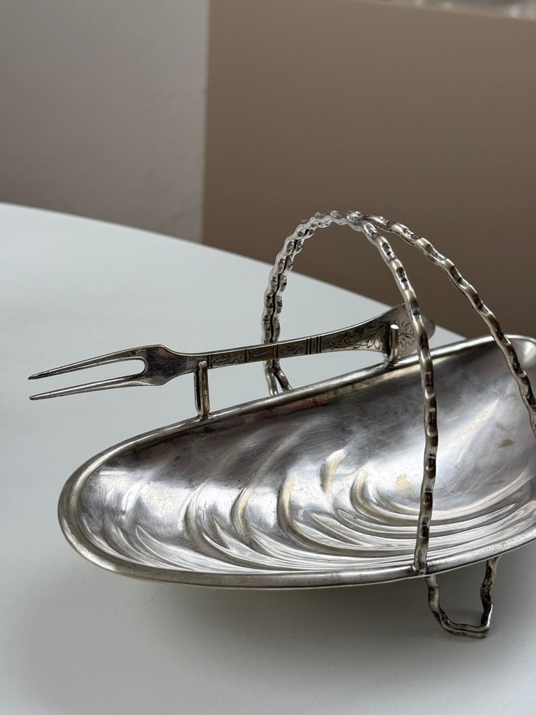 Vintage, sølvbelagt musling m. gaffel