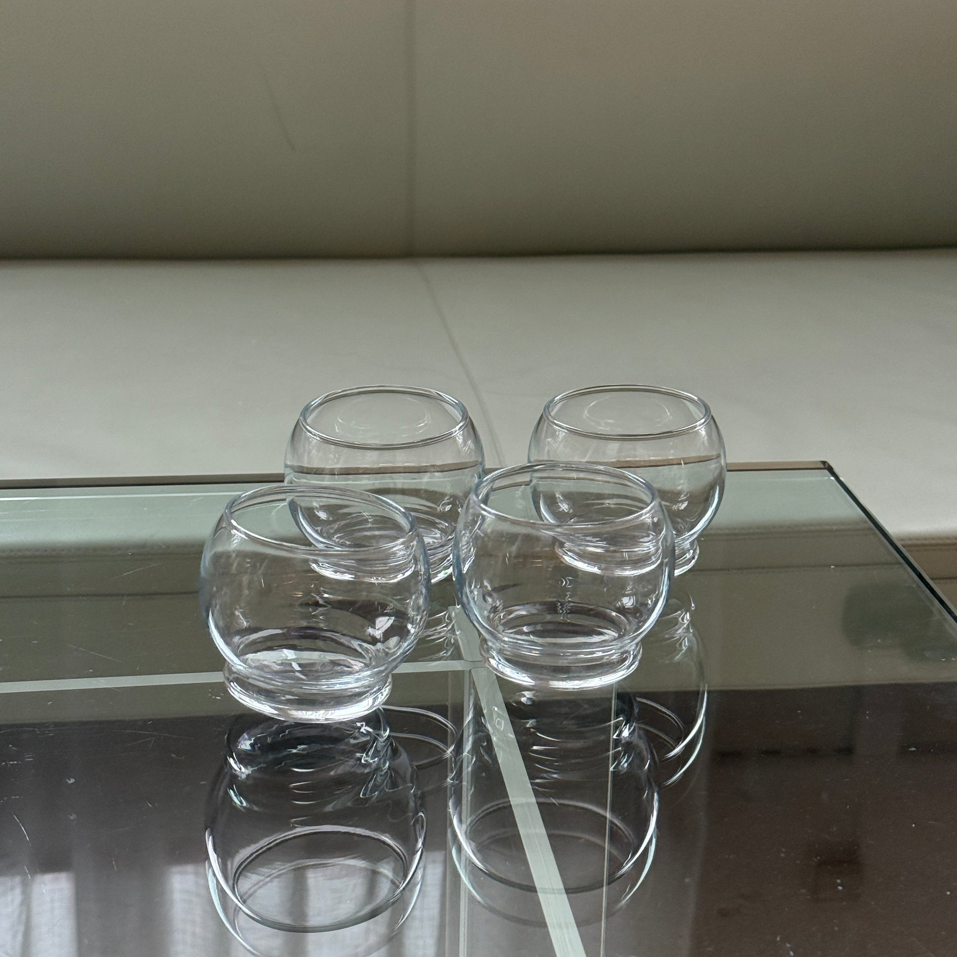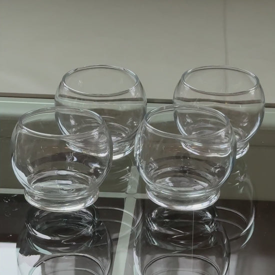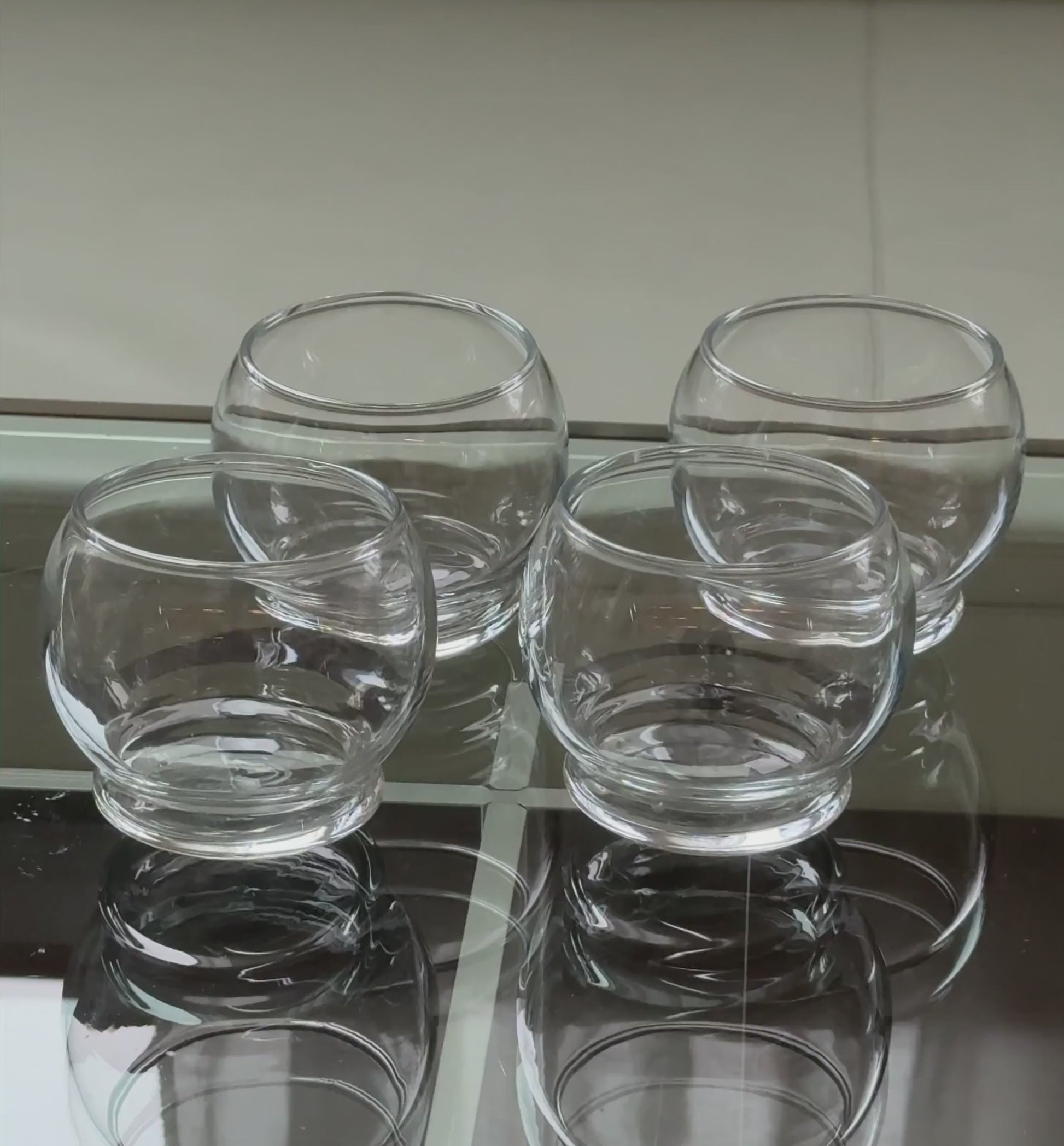 Sæt med 4 karakteristiske whiskyglas i klart glas med afrundet bund, der gør, at glassene ikke står helt fast, men let vipper frem og tilbage. Designet giver en sjov og sanselig oplevelse, hvor glasset finder sin egen balance og samtidig holder indholdet i bevægelse.